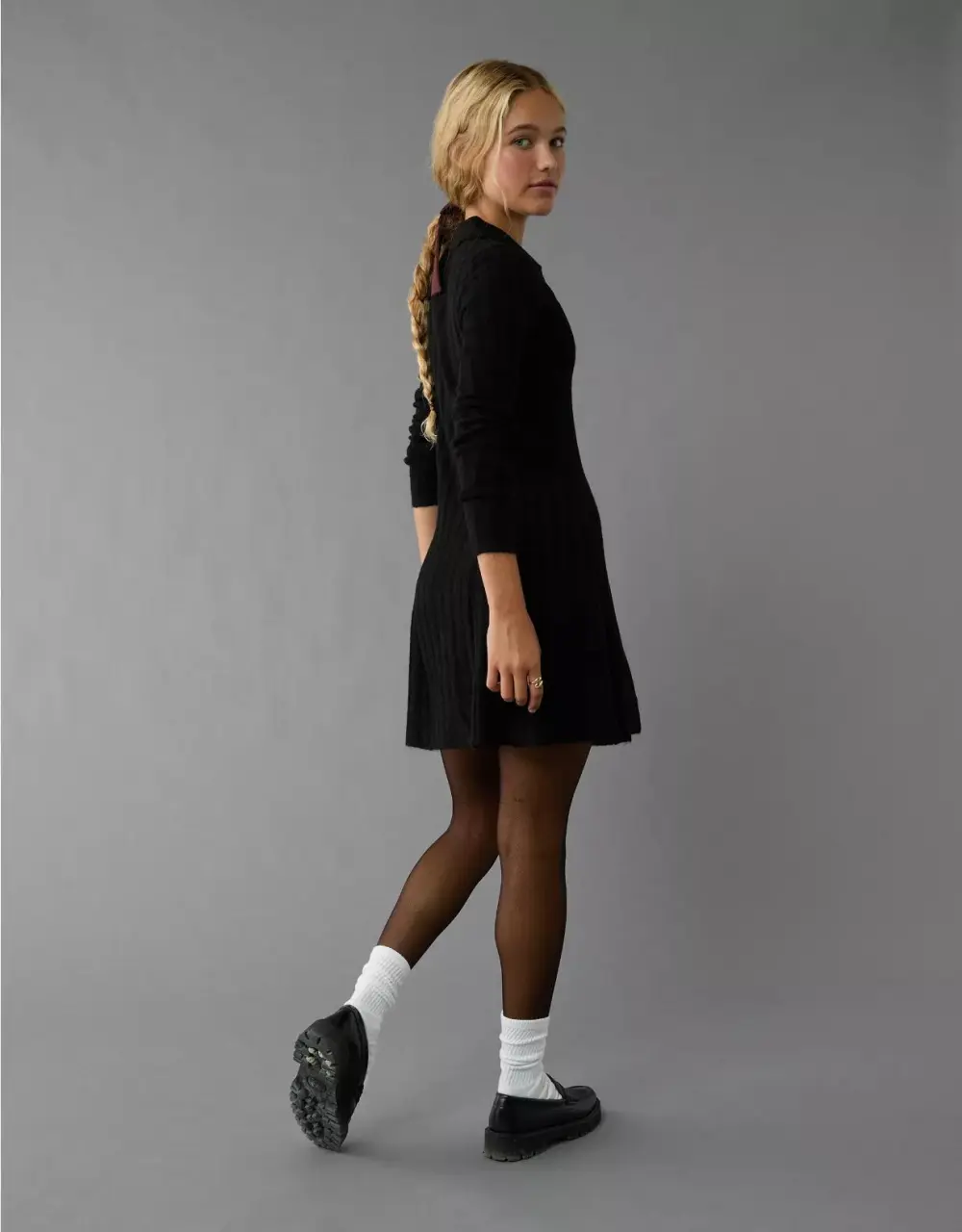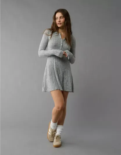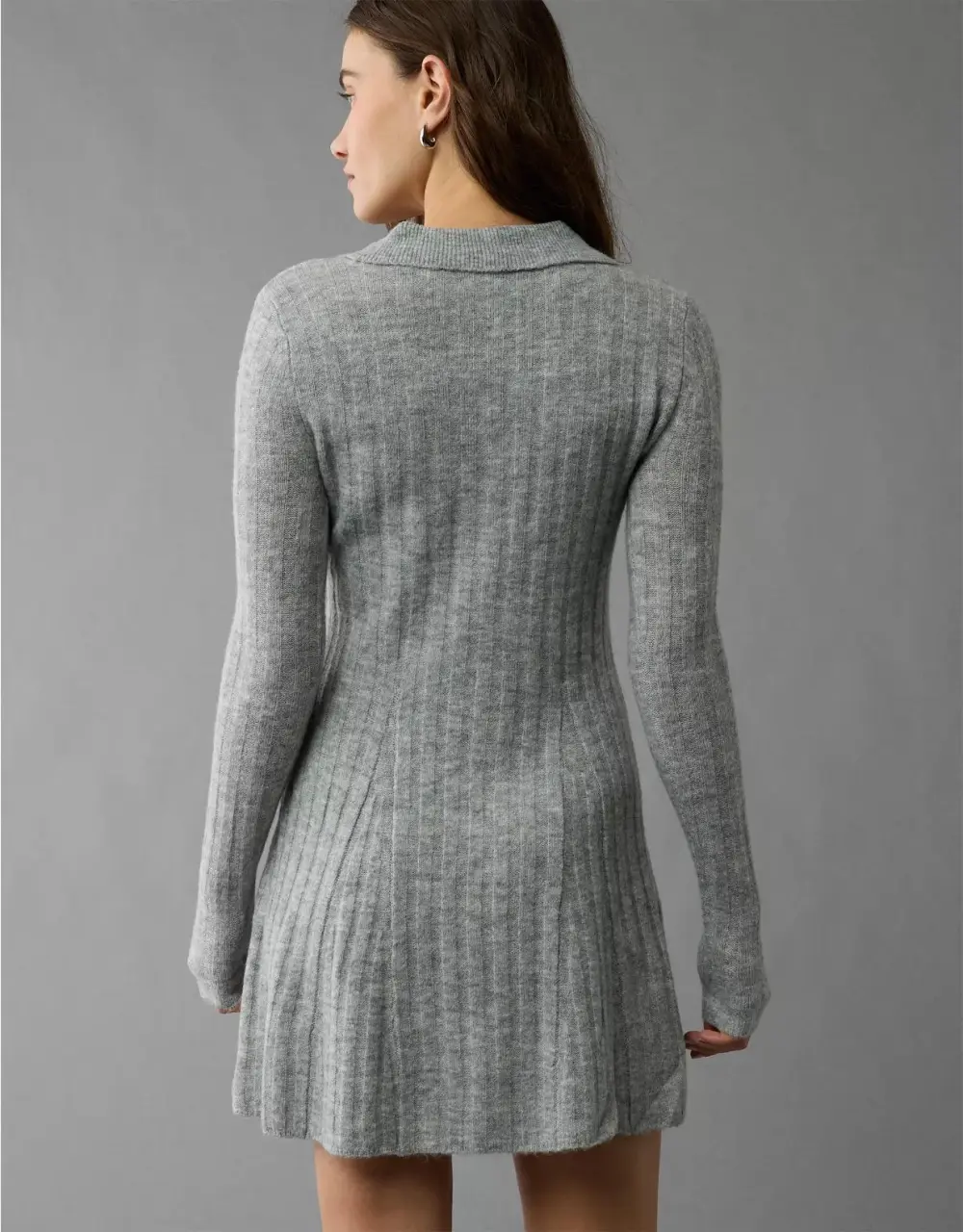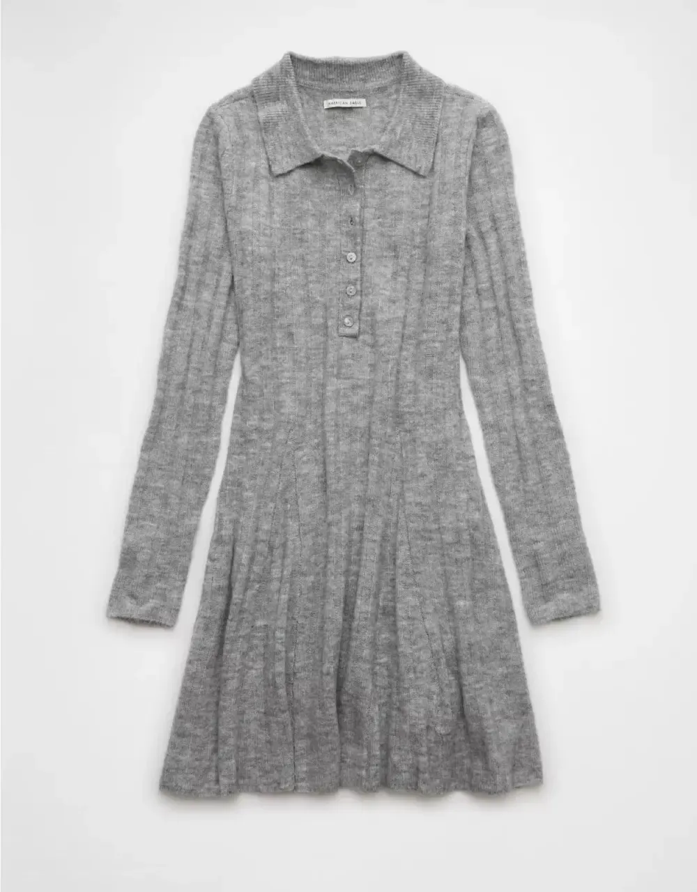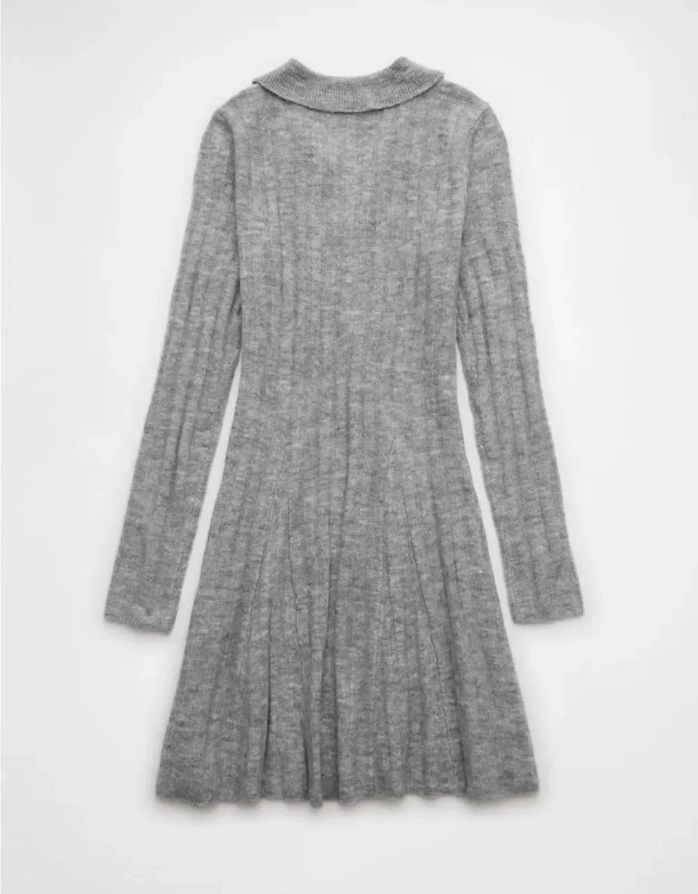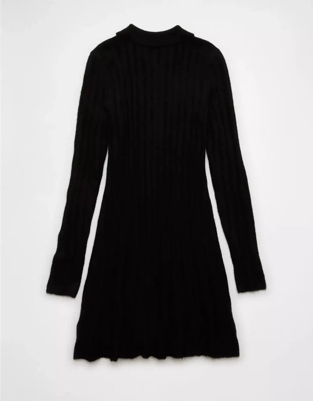 Ae Long-Sleeve Polo Mini Sweater Dress