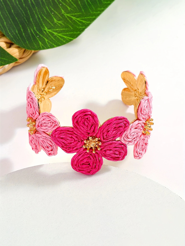 Bohemian Pink Floral Adjustable Open Bracelet