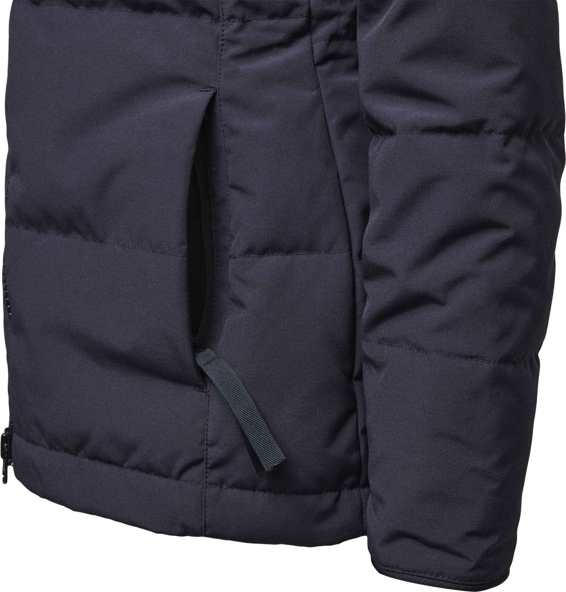 • Adjustable down-filled removeable hood adds warmth and element protection