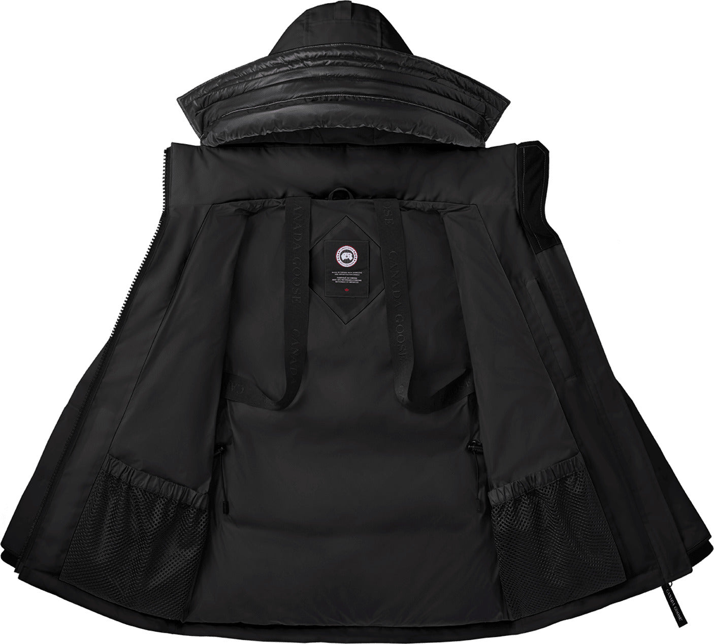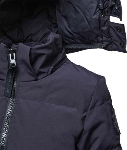 • Le capuchon est doté d’un protège-fermeture éclair amovible, offrant la possibilité de changer sa garniture pour une allure personnalisée et une protection accrue (ce manteau n’est pas compatible avec les garnitures du capuchon Heritage).