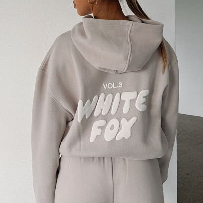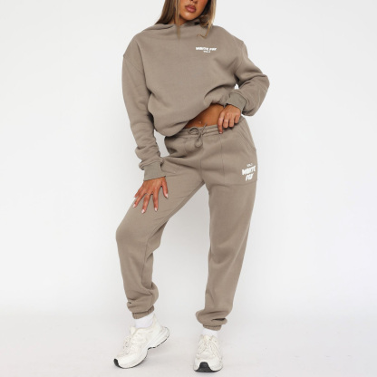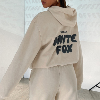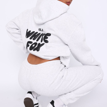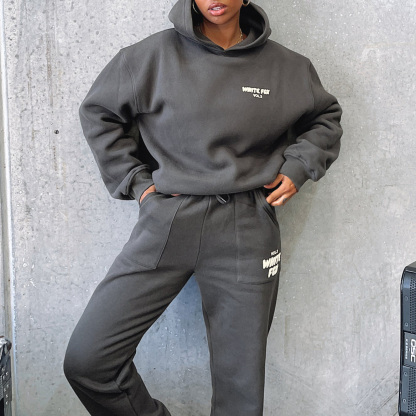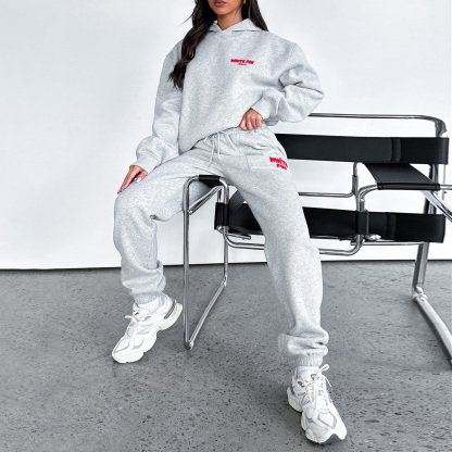 Fashion Sports LOGO Long Sleeve Pullover Hooded Sweatshirt Two Piece Set