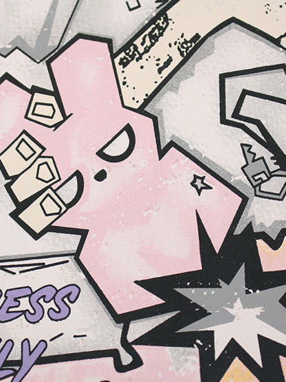• Design Elements: Vibrant graffiti-inspired graphics, bold lettering, dynamic starburst motif