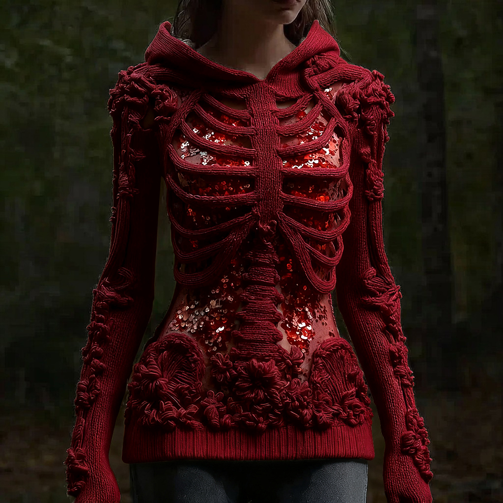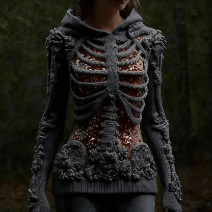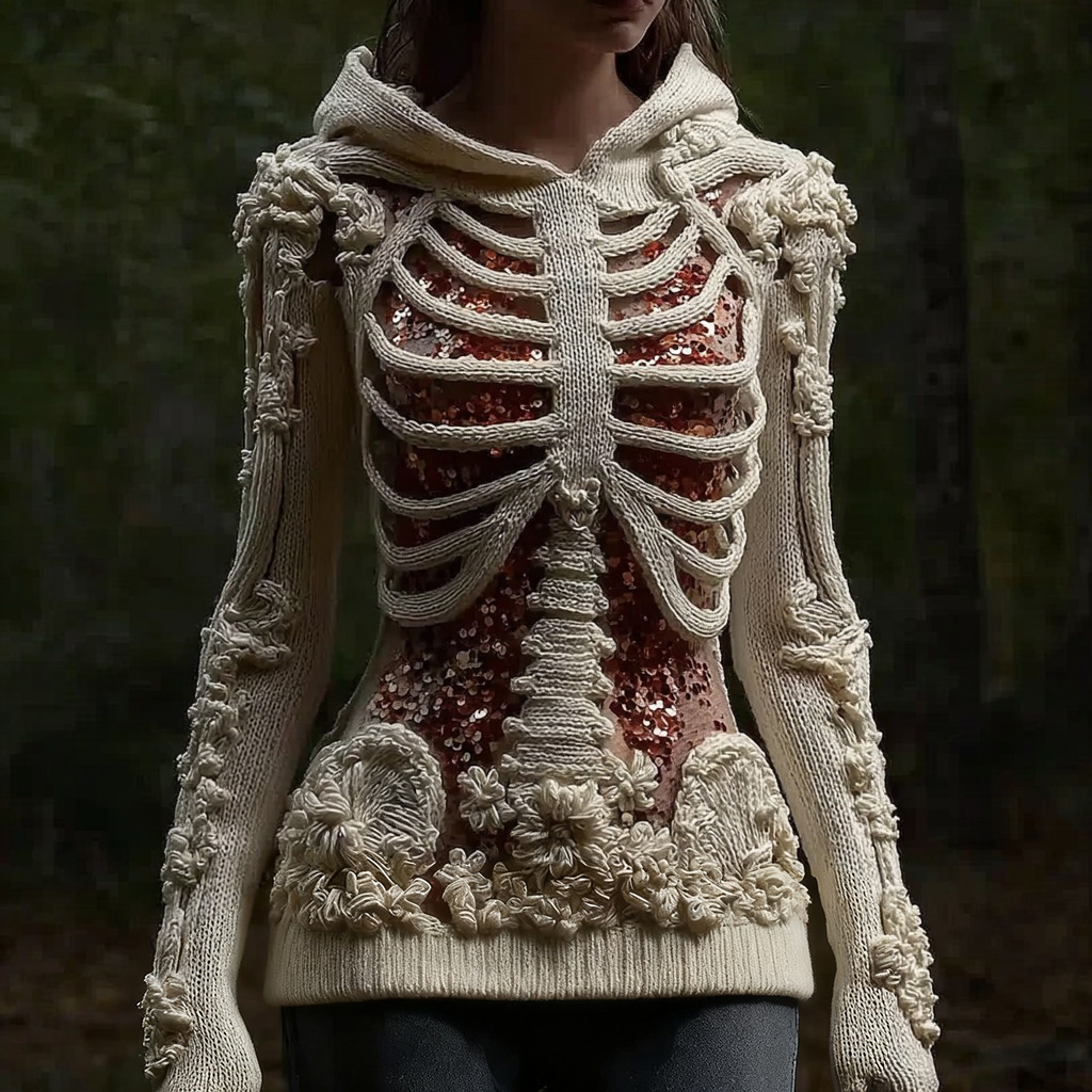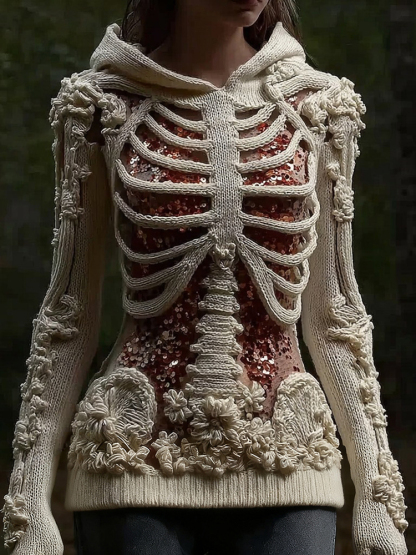 Halloween Skull Floral Knitted Warm Hooded Sweater