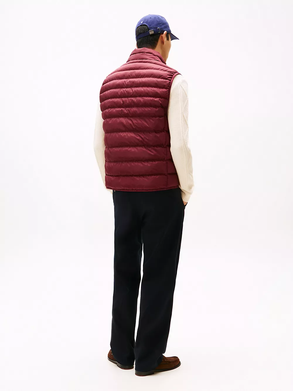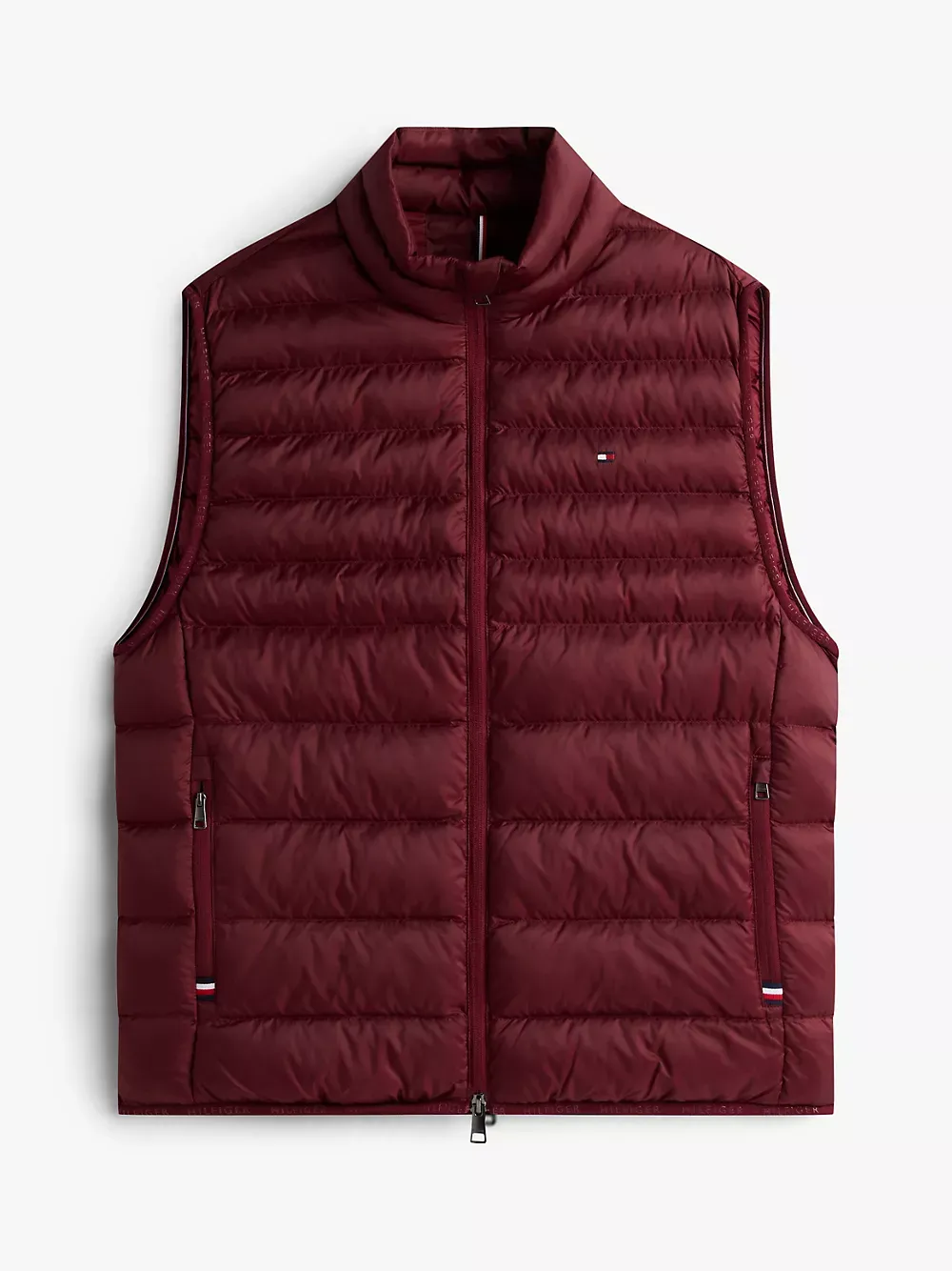 Tommy Hilfiger men's vest. Ideal for travel, this puffer vest folds down to a fraction of its size and easily stores in the internal security zip pocket. Made from lightweight fabric and toasty insulation, it's ready for whatever the weather report is dishing out.