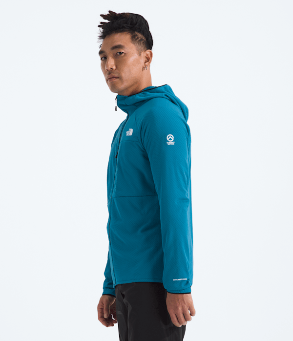 The slim-fit Men's Summit Series FUTUREFLEECE™ Full-Zip Hoodie features an innovative technology that uses a full-loop fabric to minimize weight and help optimize body temperature. It's designed to be worn over a base layer or under whatever insulation the mission calls for. Flat-locked stitching and no shoulder seams help maintain comfort when wearing a pack, while a pre-tensioned hood can easily be worn under a helmet.