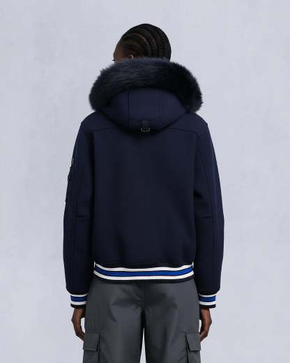 NHL X MOOSE KNUCKLES MAPLE LEAFS BOMBER JACKET-NAVY/BLUE/BONE/BLACK