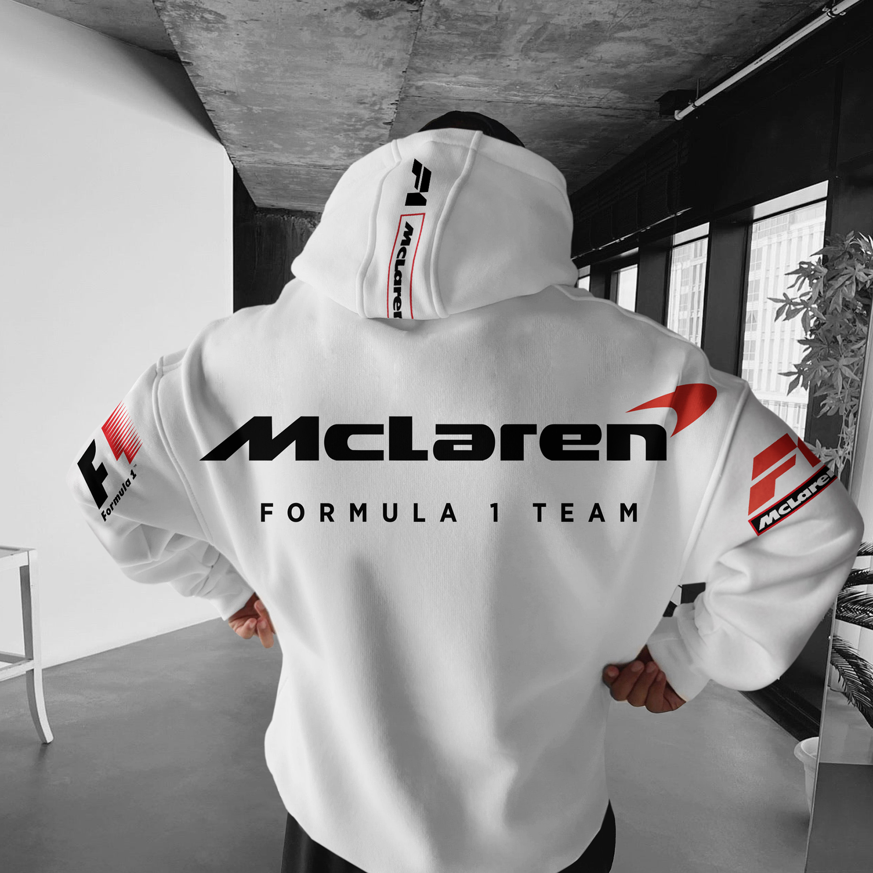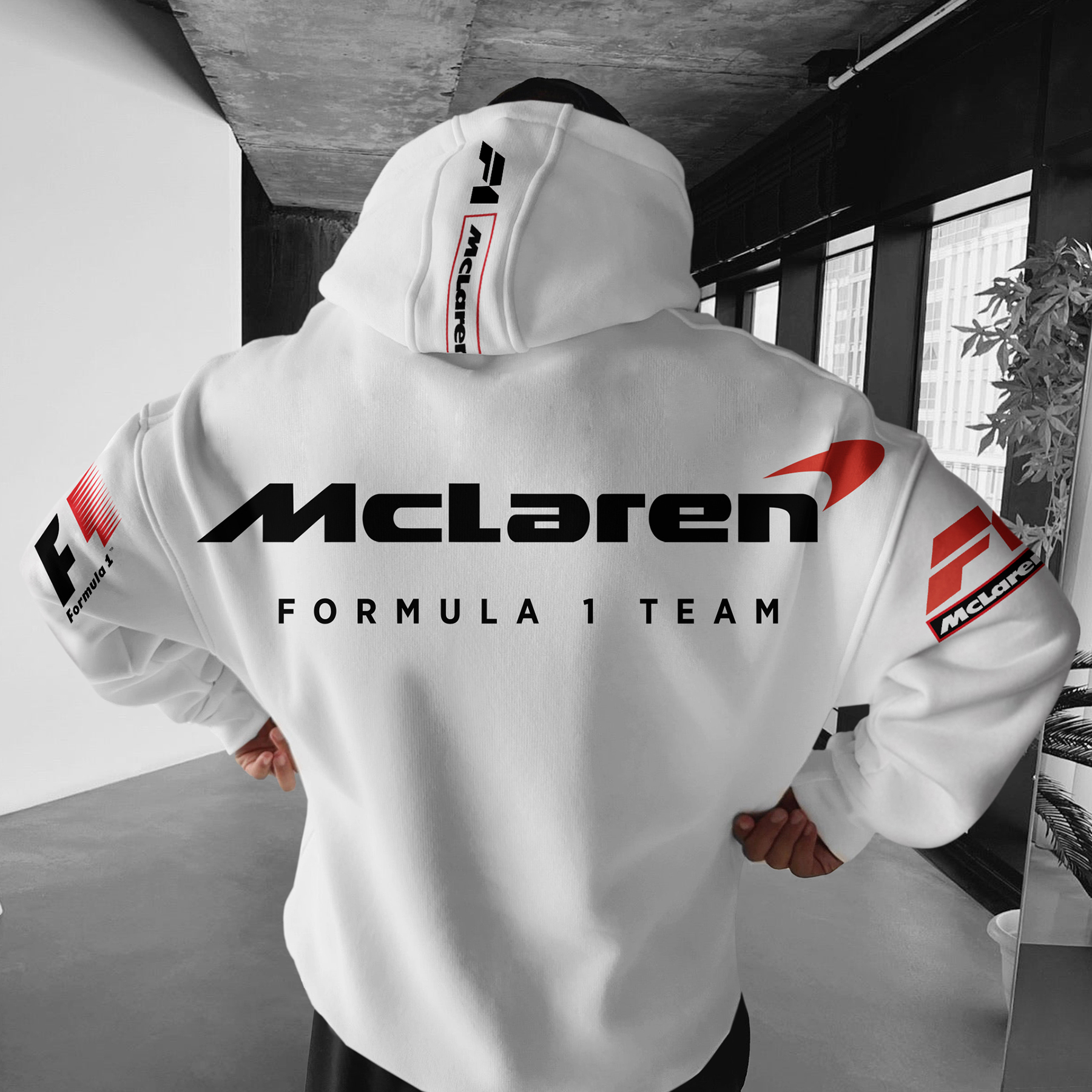 Oversize Formula 1 Racing Graphic Print Hoodie