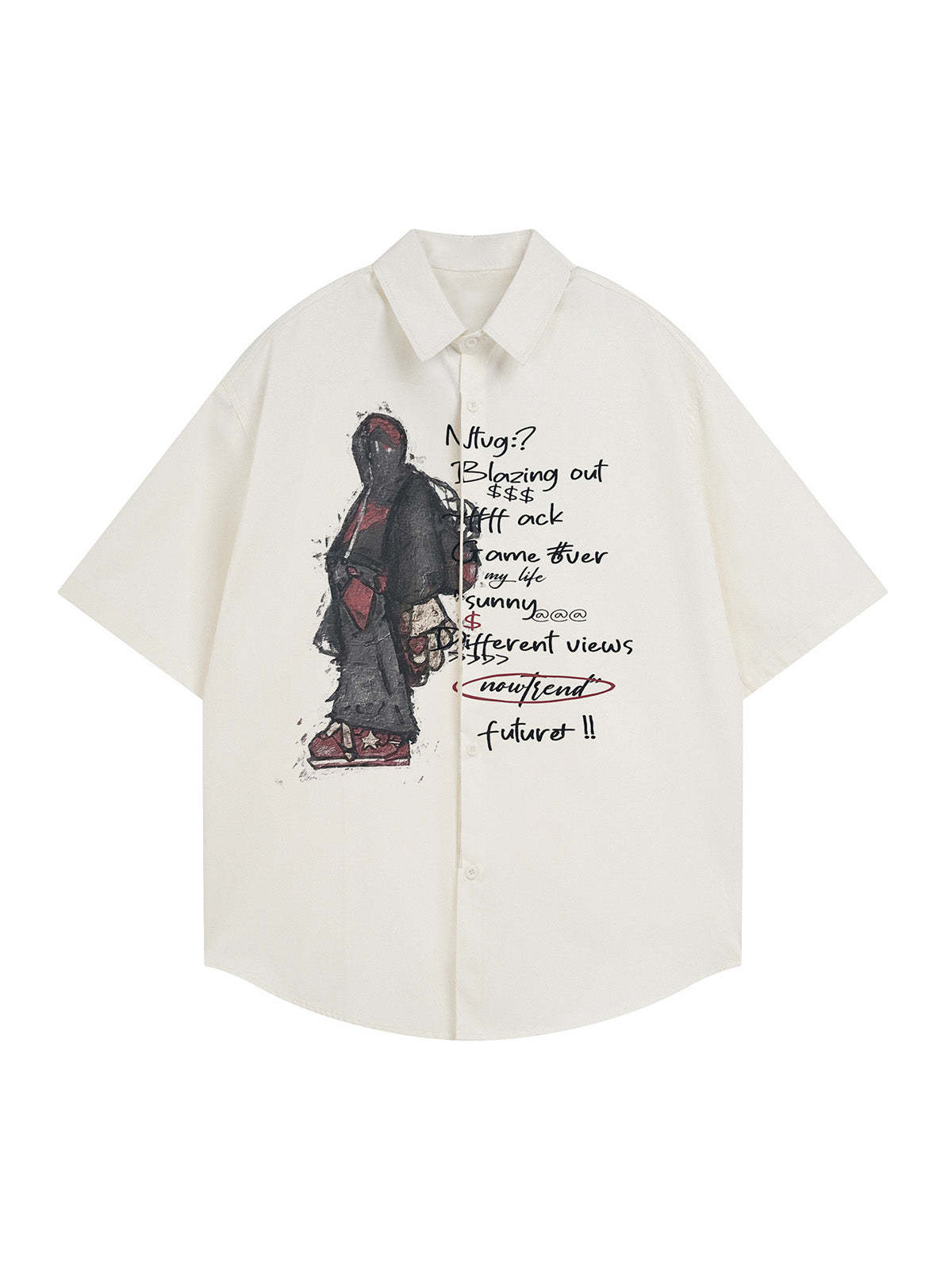Oversized Graphic Cartoon Letter Print Short-Sleeve Shirt