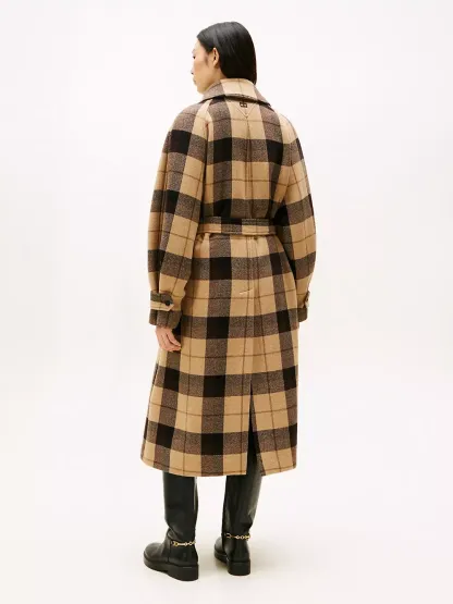 Plaid Wool-Blend Belted Oversized Coat
