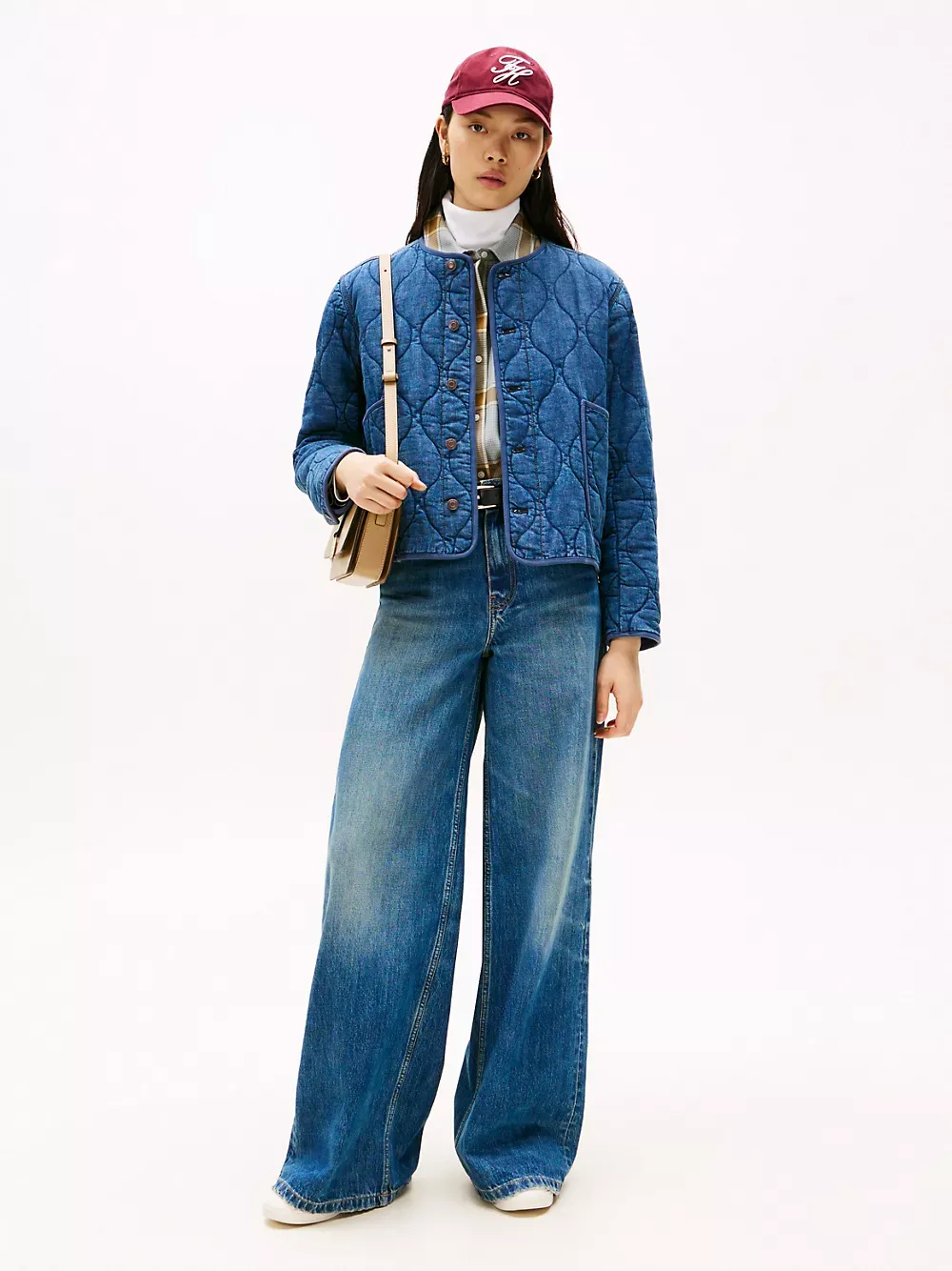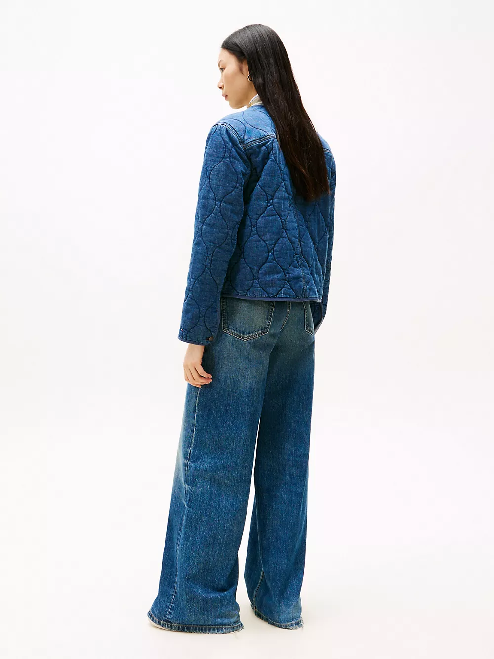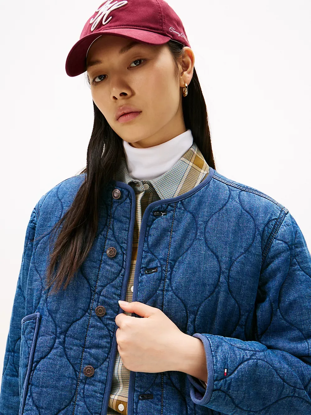 Tommy Hilfiger women's jacket. Our barn jacket is made from durable stretch-cotton denim with a pillowy, quilted texture ideal for the transitional days of the season. This timeless design layers easily over sweaters and tees, and will live in your wardrobe for years.