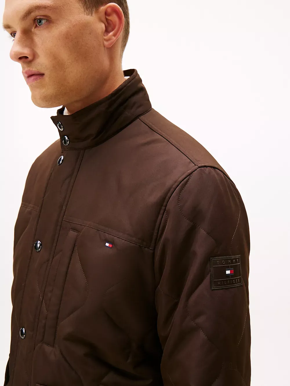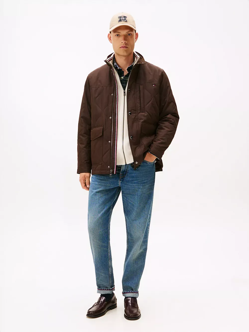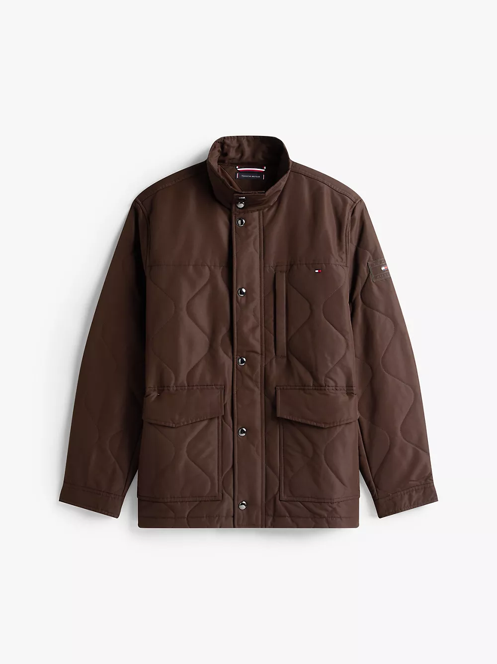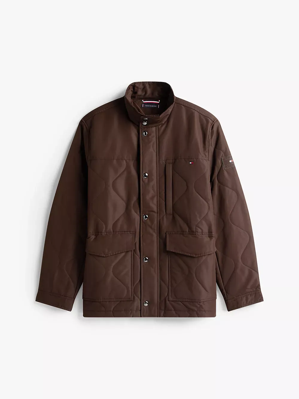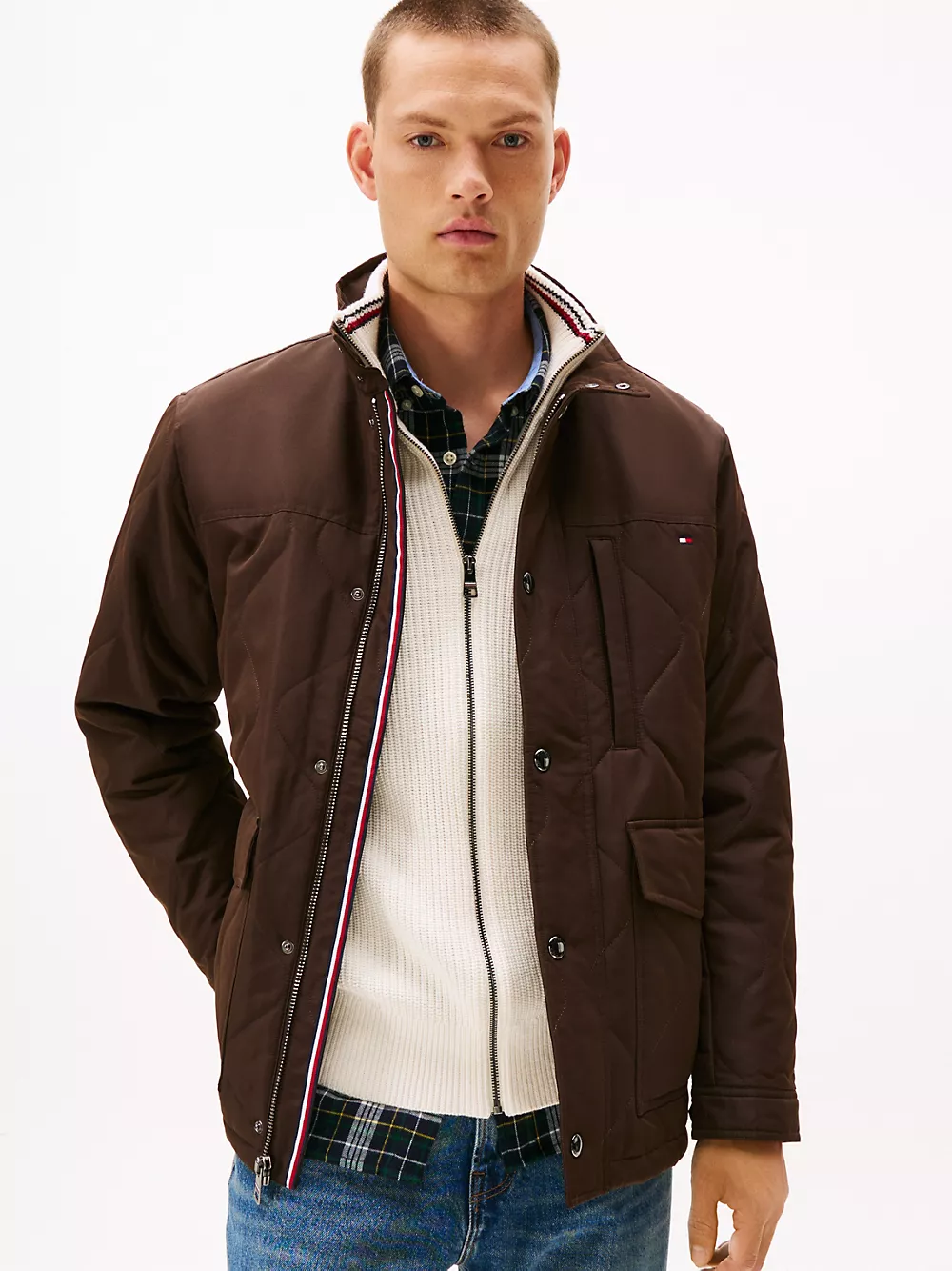 Tommy Hilfiger men's jacket. Tackle fickle weather in our quilted field jacket. Designed with side vents and a standing collar, this outerwear layer keeps you warm, thanks to the lightweight thermal insulation.