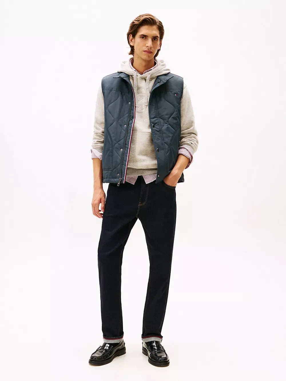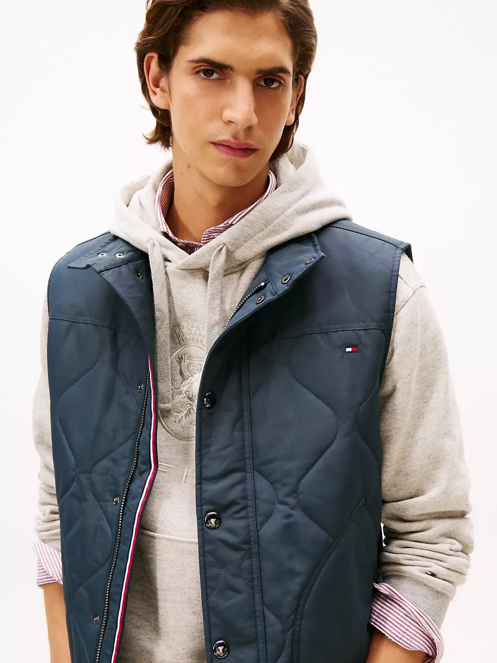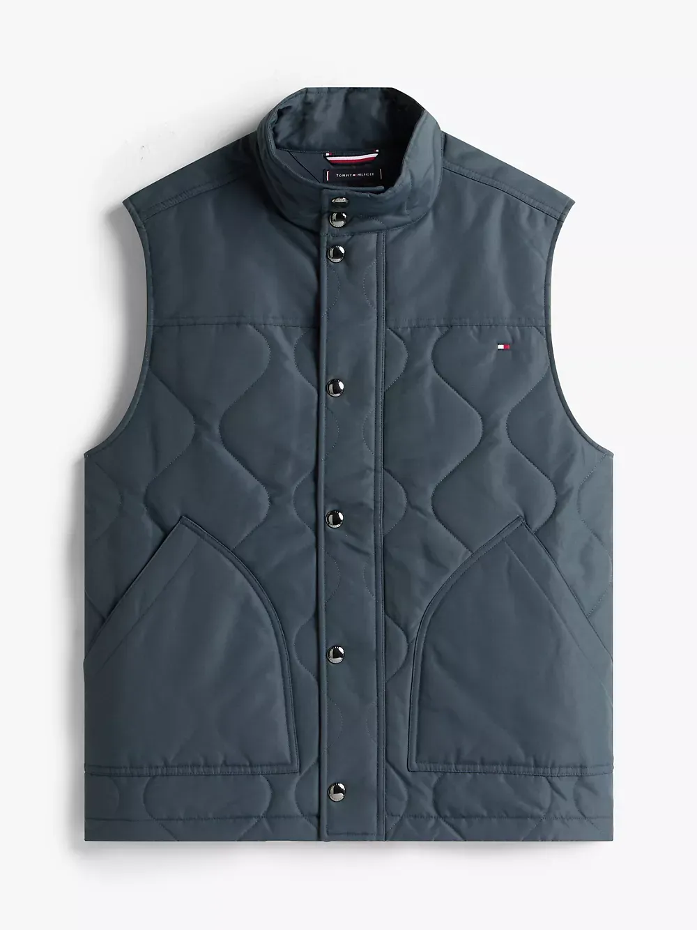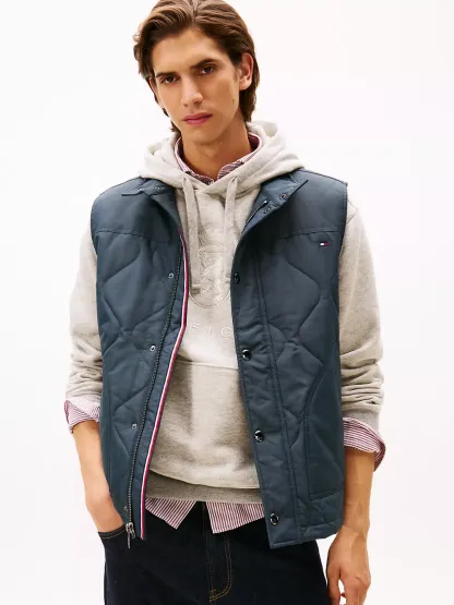 Tommy Hilfiger men's vest. Tackle fickle weather in our quilted field vest. Designed with side vents and a standing collar, this outerwear layer keeps you warm, thanks to the lightweight thermal insulation.