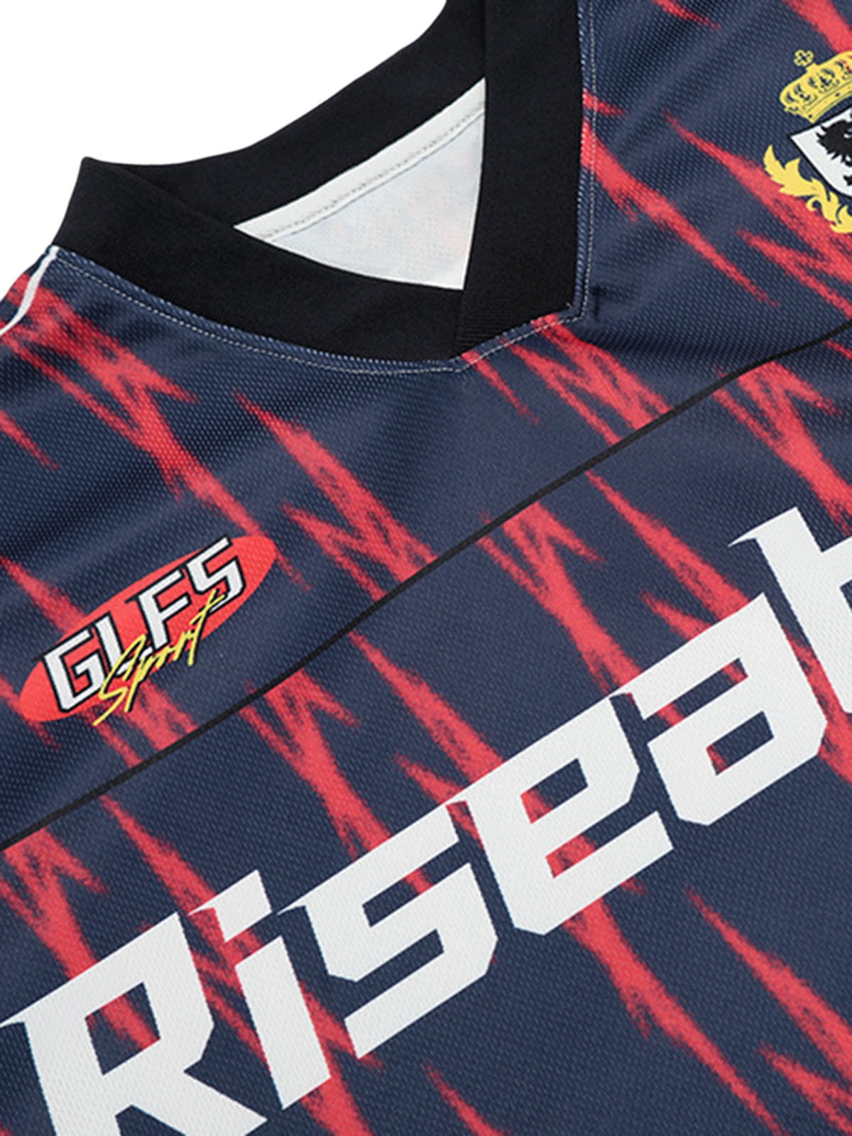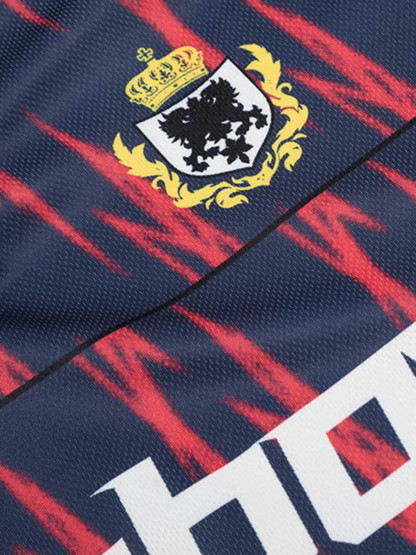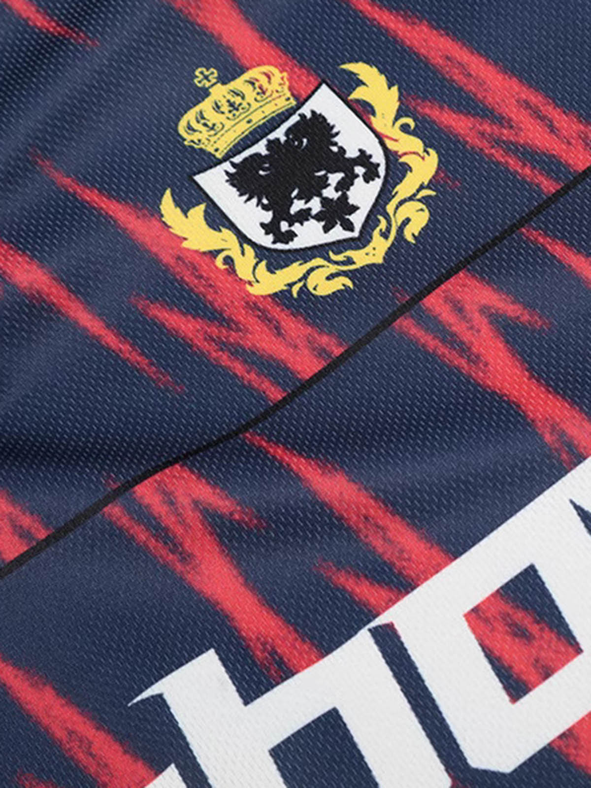 • Detail Features: Bold Flame Print, Ribbed Collar and Cuffs, Team Name Graphic