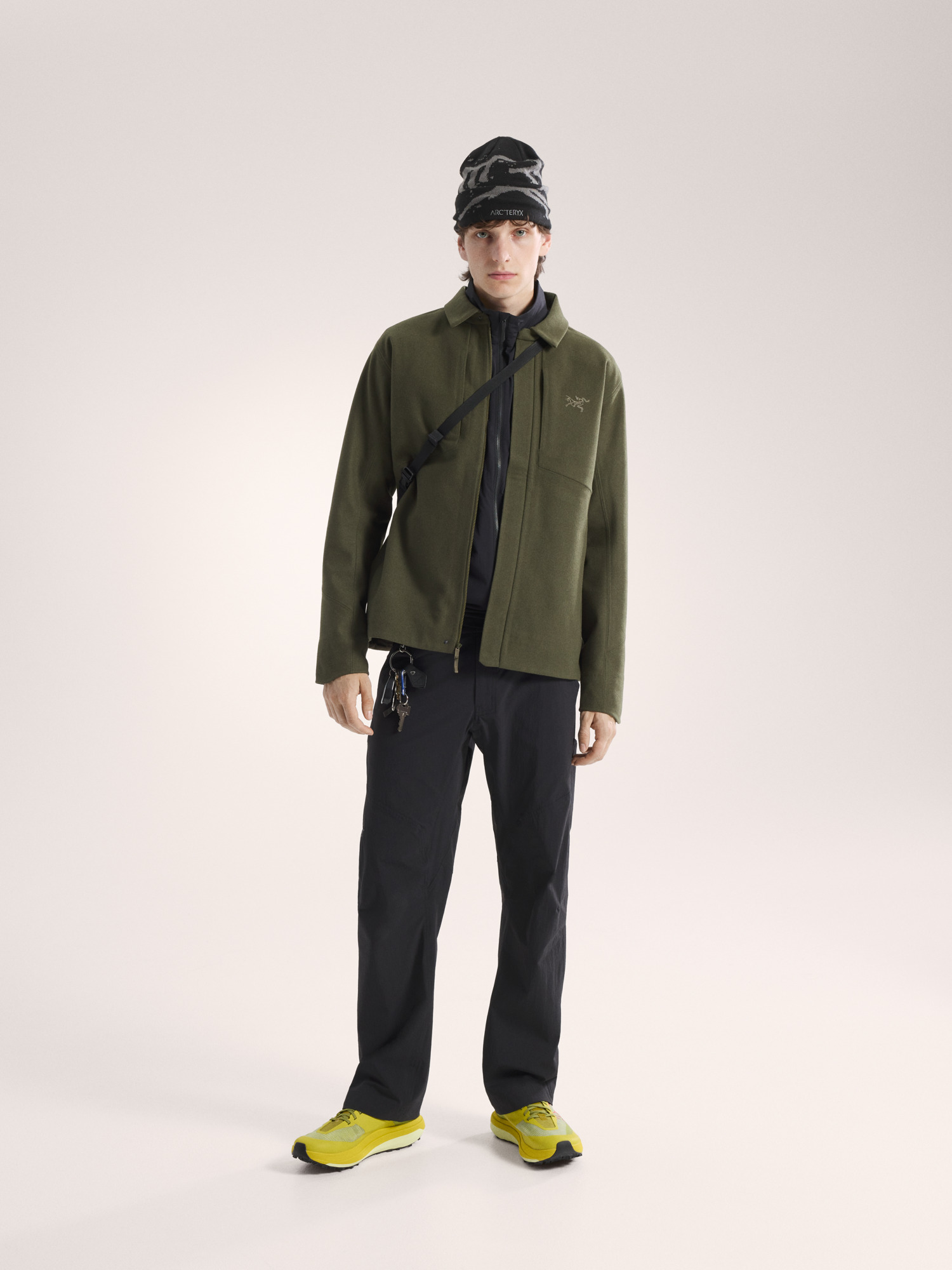 - Body: 2L Bonded Wool Softshell, 433gsm, Mixed wool face w/ 100% Recycled Polyester fleece backer - 85% Wool, 14% Nylon, 1% Elastane