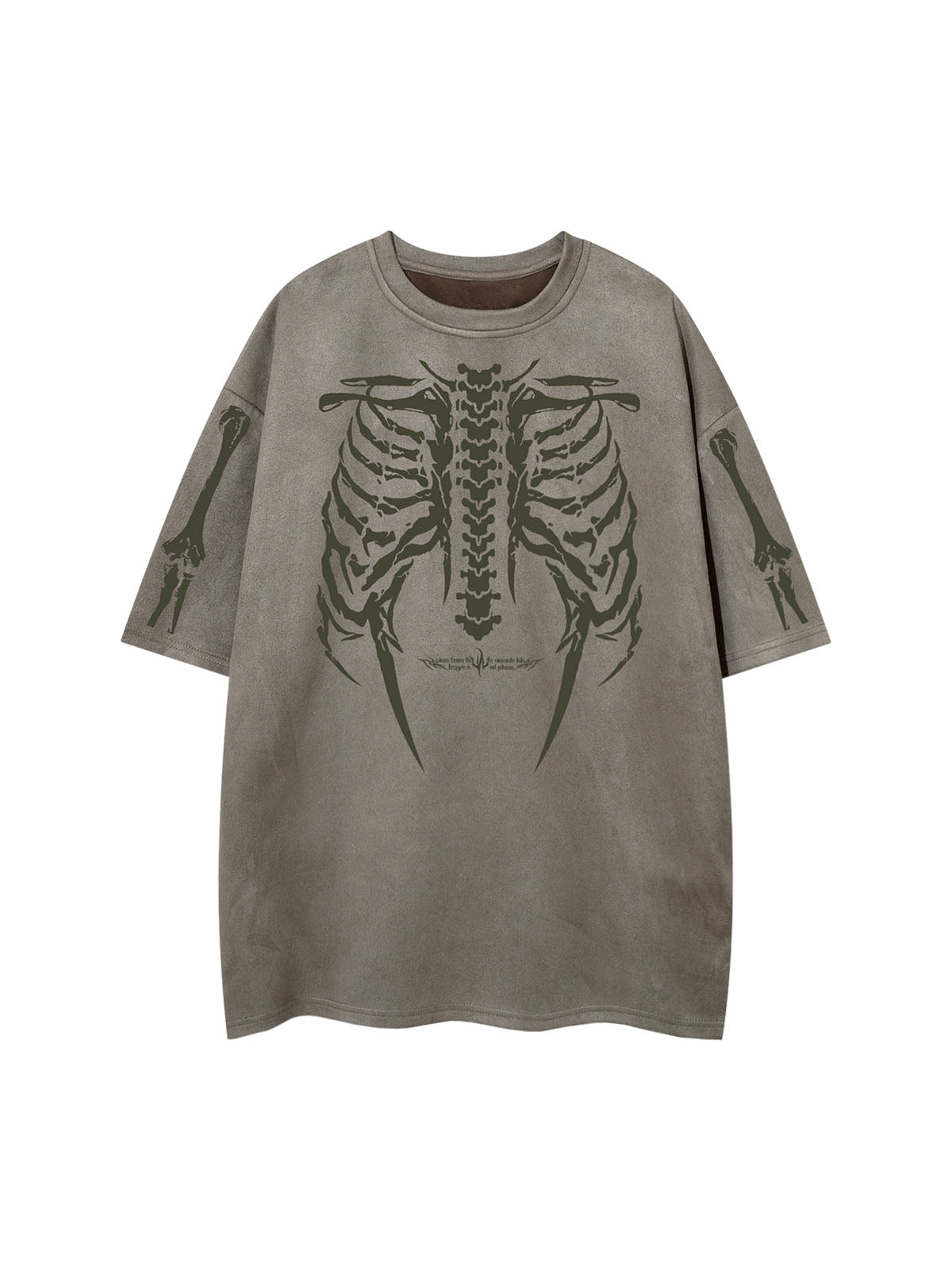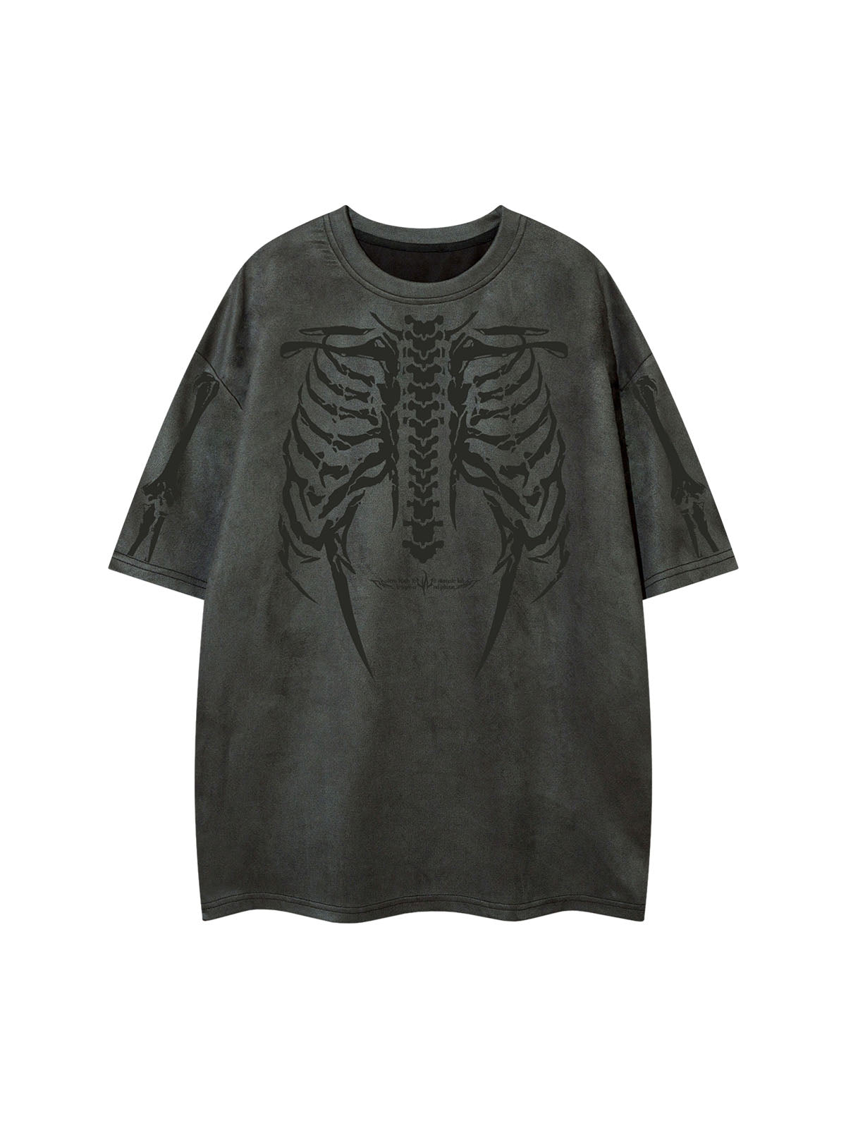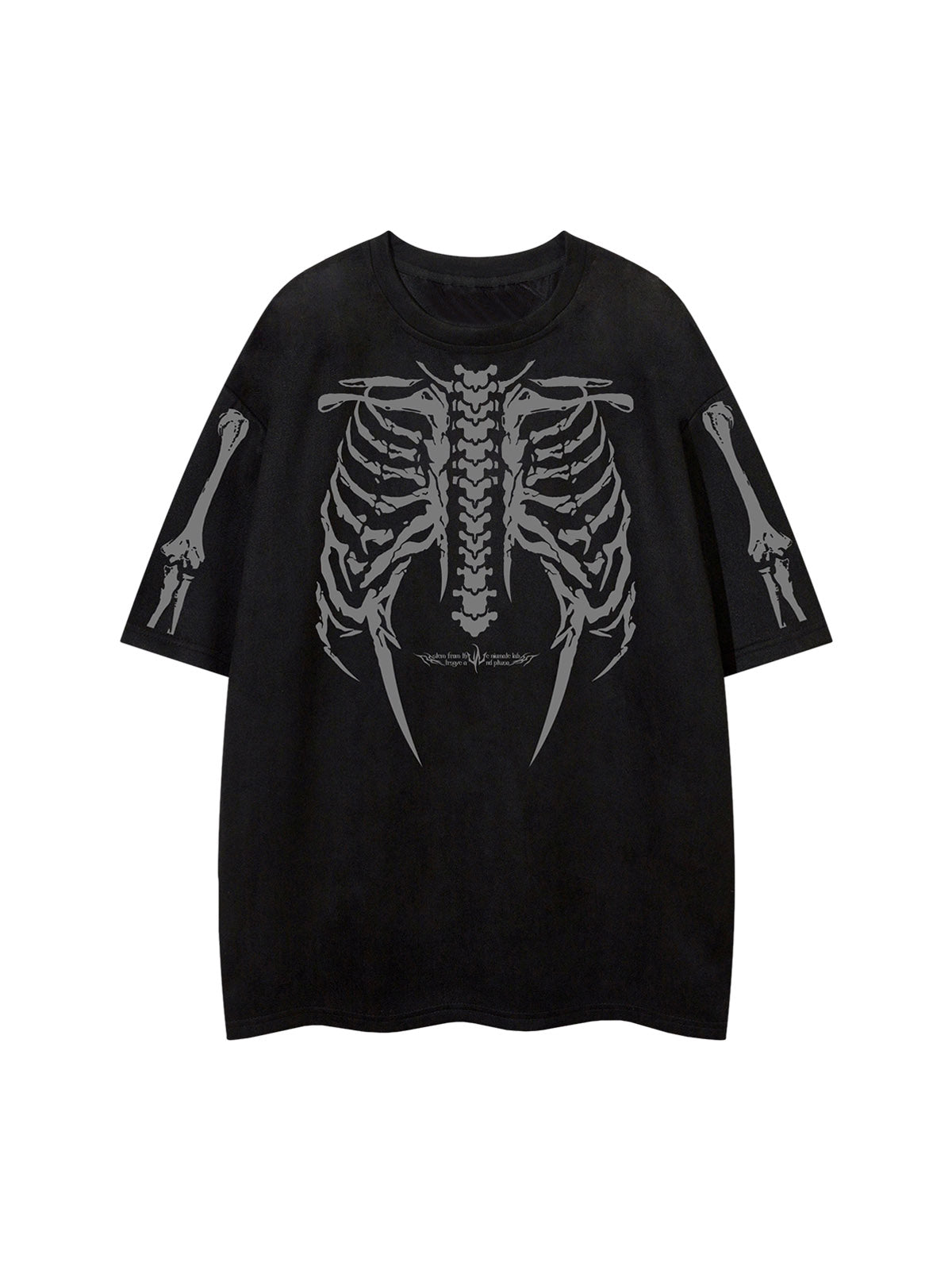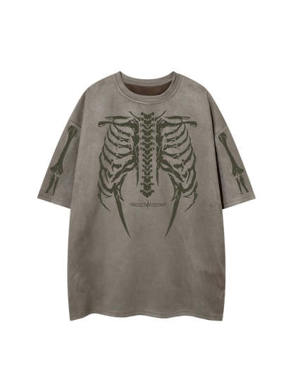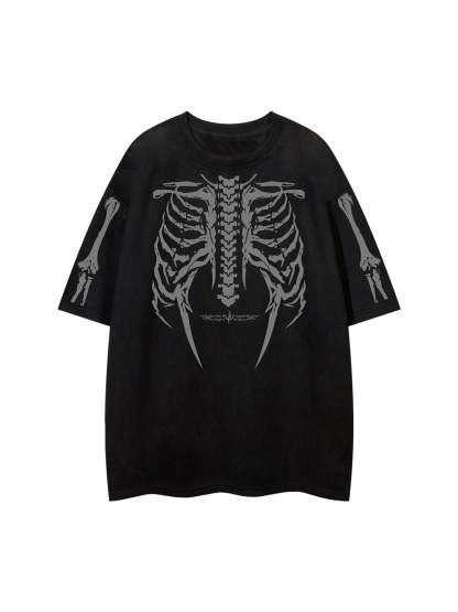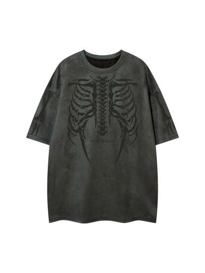 • Design Elements: Detailed skeleton ribcage print on the front and arms