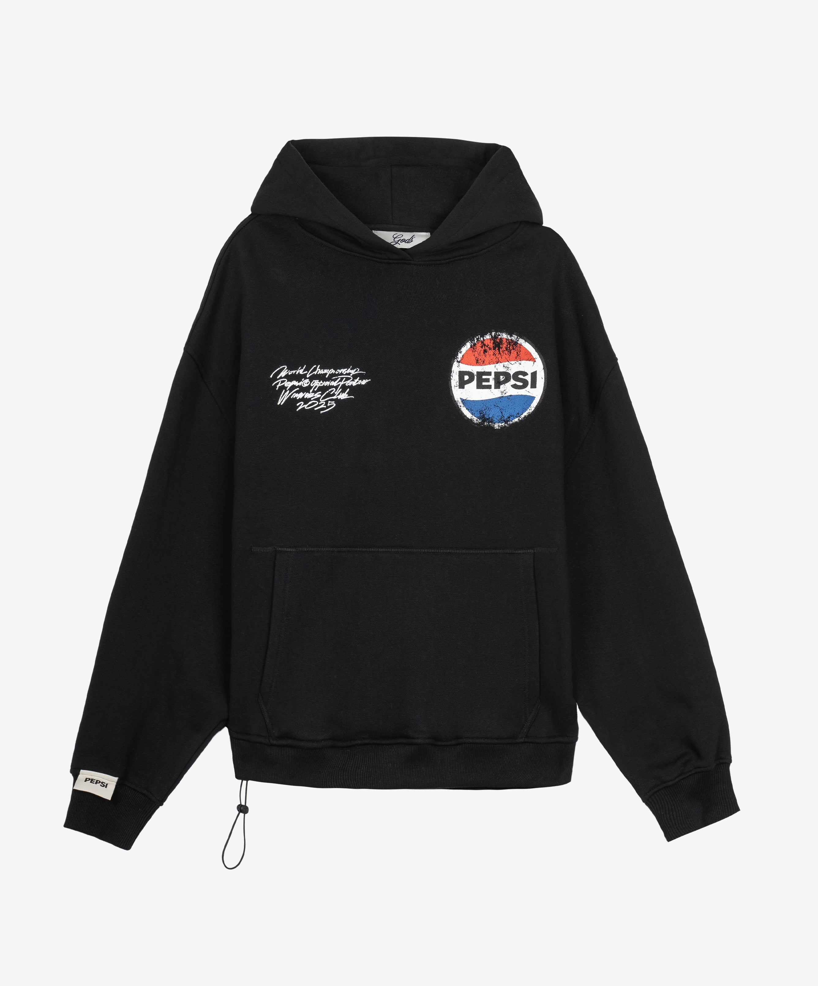 El corte cropped moderno le da una nueva dimensión a la clásica sudadera con capucha, mientras que los logos vintage de Pepsi y Gods, tratados con un efecto desgastado, aportan un carácter auténtico y exclusivo. Fabricada con materiales de alta calidad en un versátil color negro, esta sudadera es perfecta para quienes buscan destacar con un estilo relajado pero impactante.