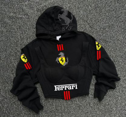 • Detail Features: Front pocket design, iconic racing emblem, adjustable drawstring hood