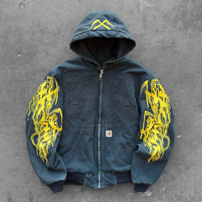 Stylish Skull Print Long Sleeve Zipper Hooded Jacket