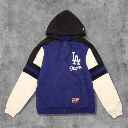 Stylish Team Logo Contrast Color Print Zipper Hoodies
