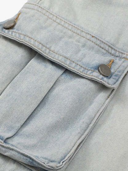 Thesupermade Vintage Washed Multi-pocket Work Jeans