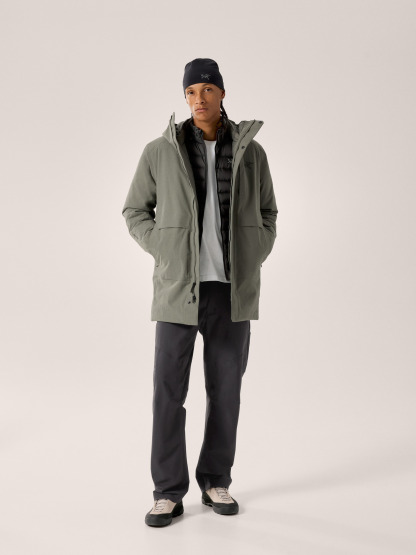 Minimalist design lines. Maximum weather protection. The Therme Down Parka fuses a refined aesthetic with the technical construction of a tried-and-true Arc'teryx hardshell. Built for wet-weather rambles and trips around town, its GORE-TEX ePE material and adjustable StormHood™ shield from wind chill and downpours. Lightweight goose down in a long, hip-covering style seals in warmth, keeping you comfortable from office to après.