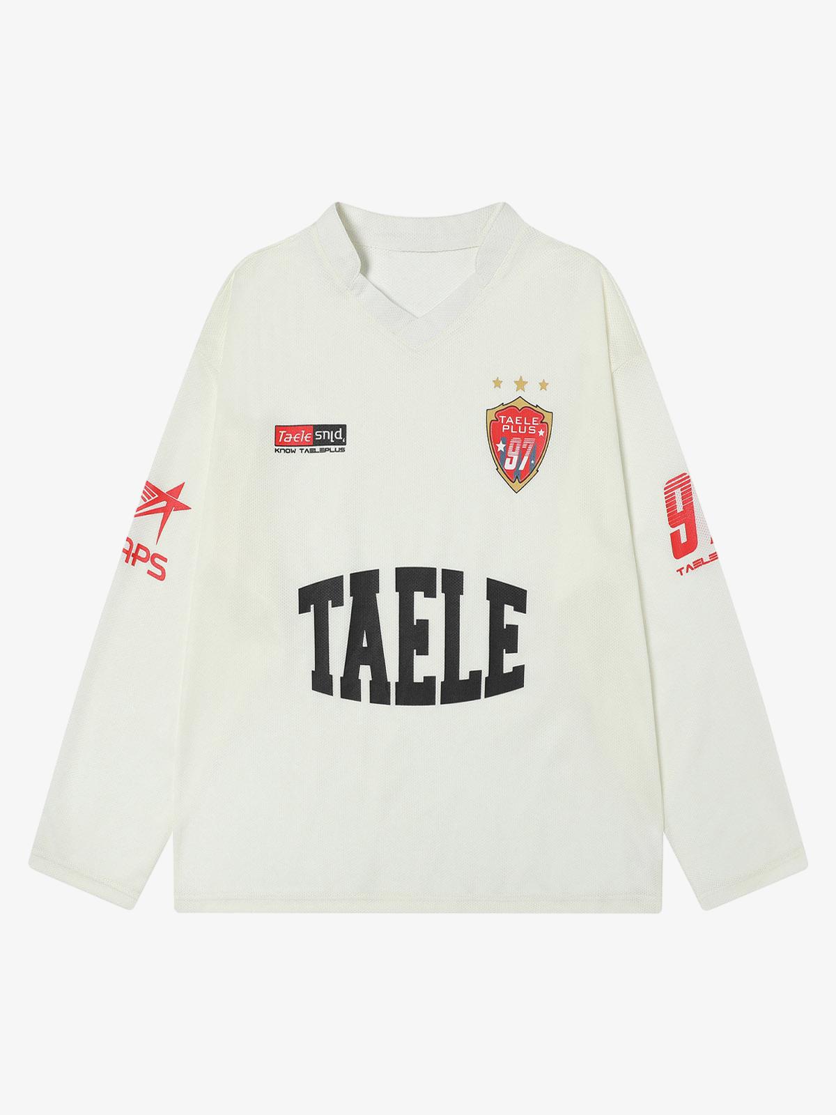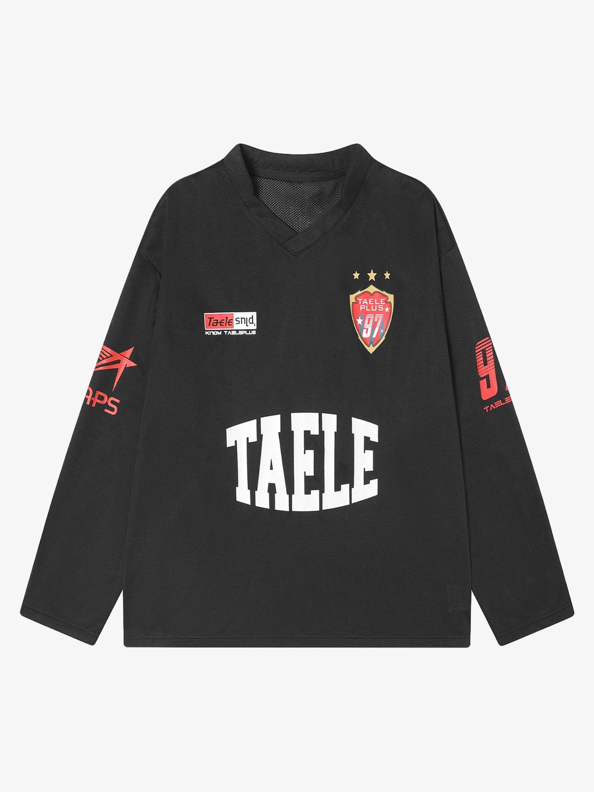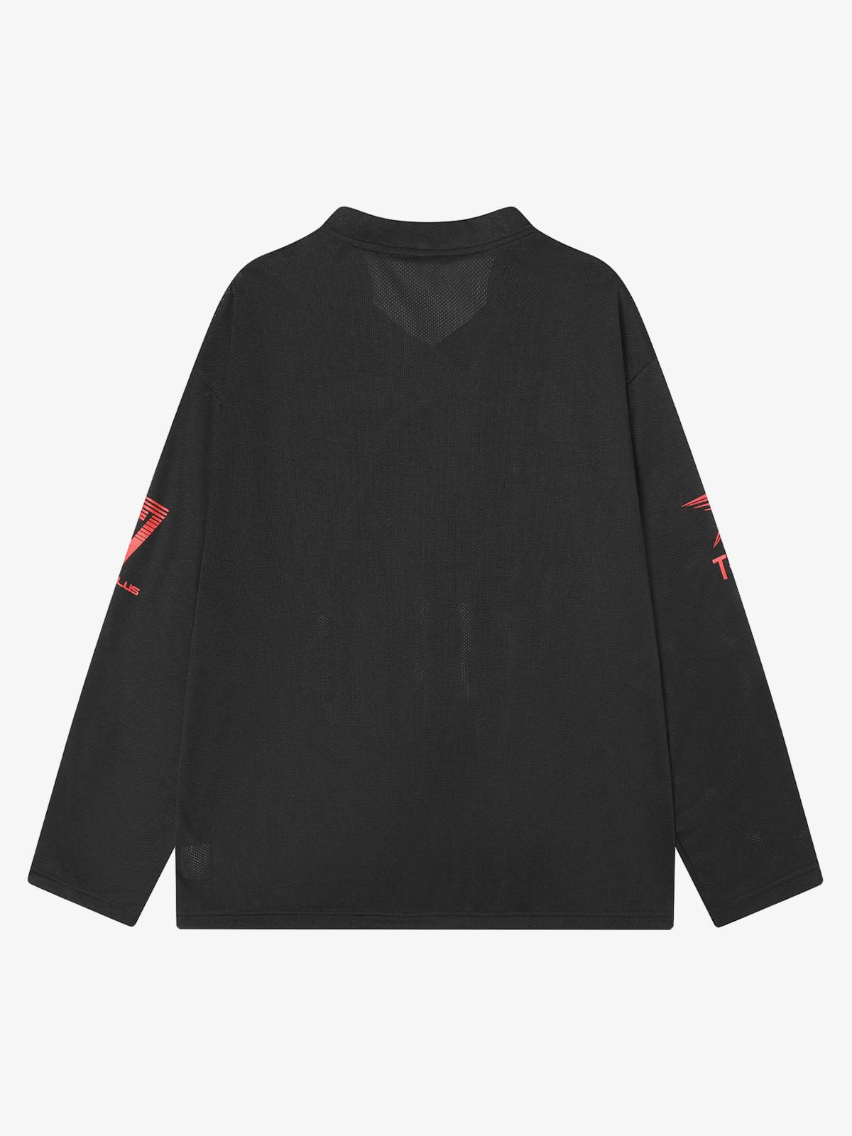 Retro Jersey Mesh Print Long Sleeve T-shirt