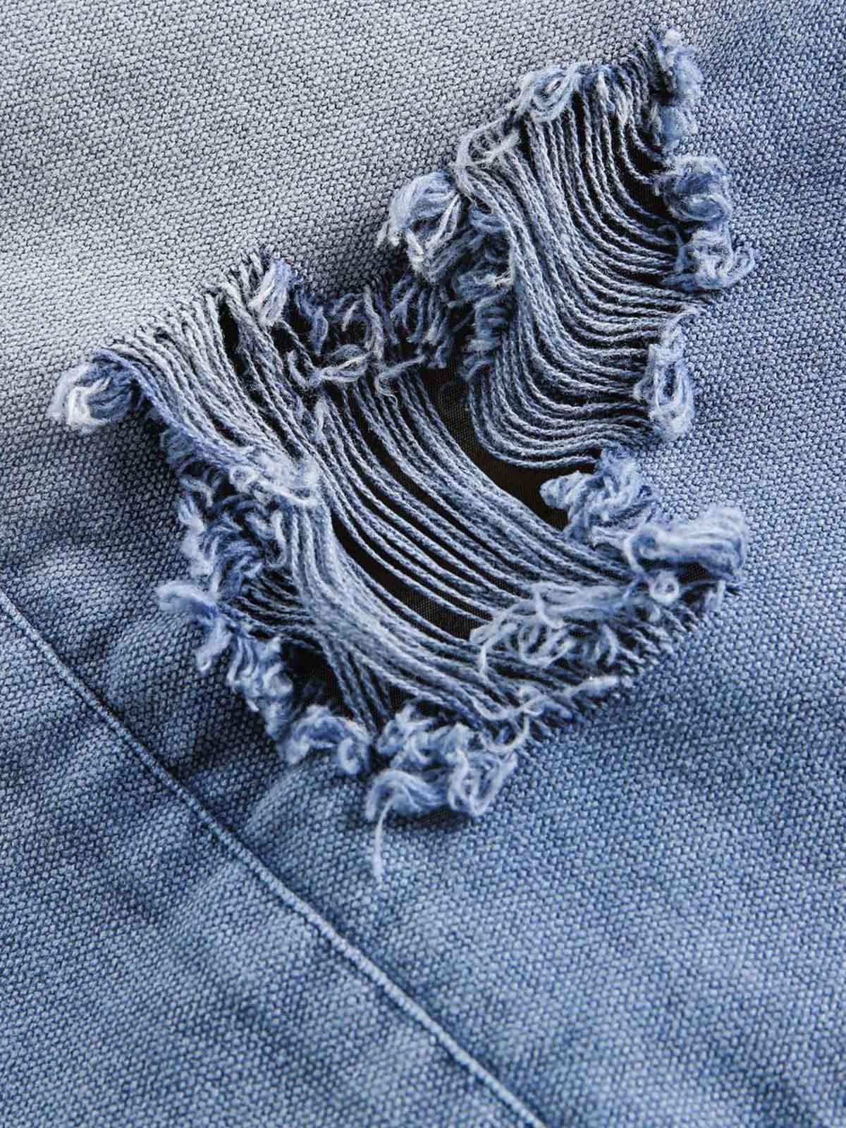 Ripped Graffiti Washed Zip Up Denim Jacket