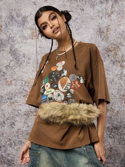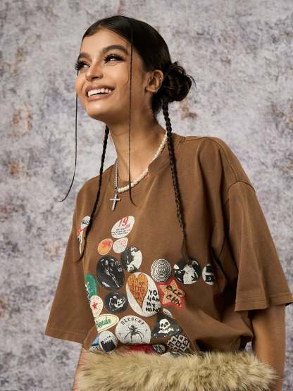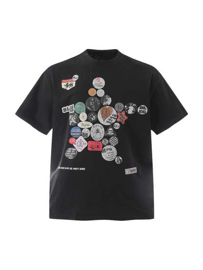 Badge Print Distressed Short Sleeve T-Shirt