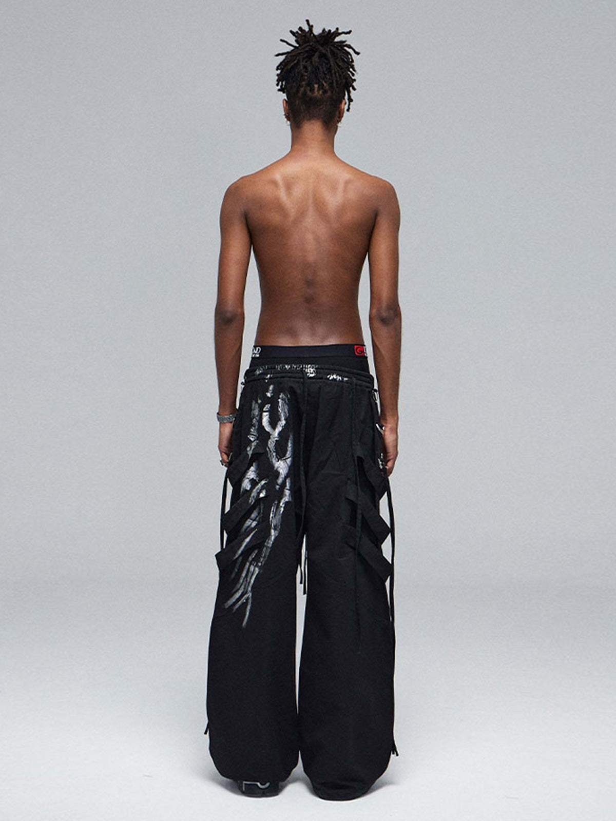 Deconstructed Brushed Silver Ribbon Drawstring Pant - 2177