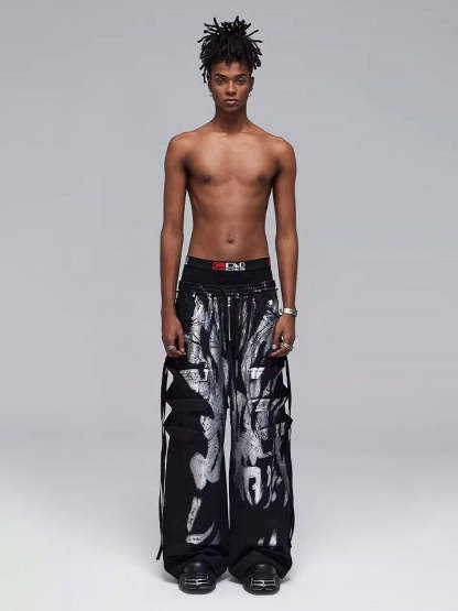 • Detail Features: Elastic Waistband, Drawstring Closure, Side Pockets, Flame Print