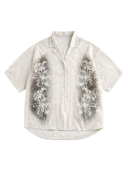 Exquisite Floral Embroidered Short-Sleeve Shirt