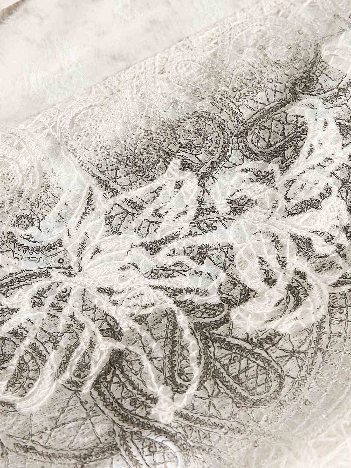 • Design Elements: Intricate floral embroidery on the chest, paisley pattern background