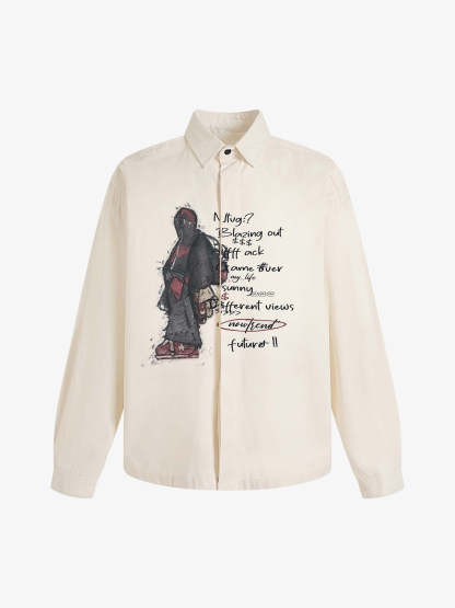 Graphic Portrait Print Long-Sleeve Shirt