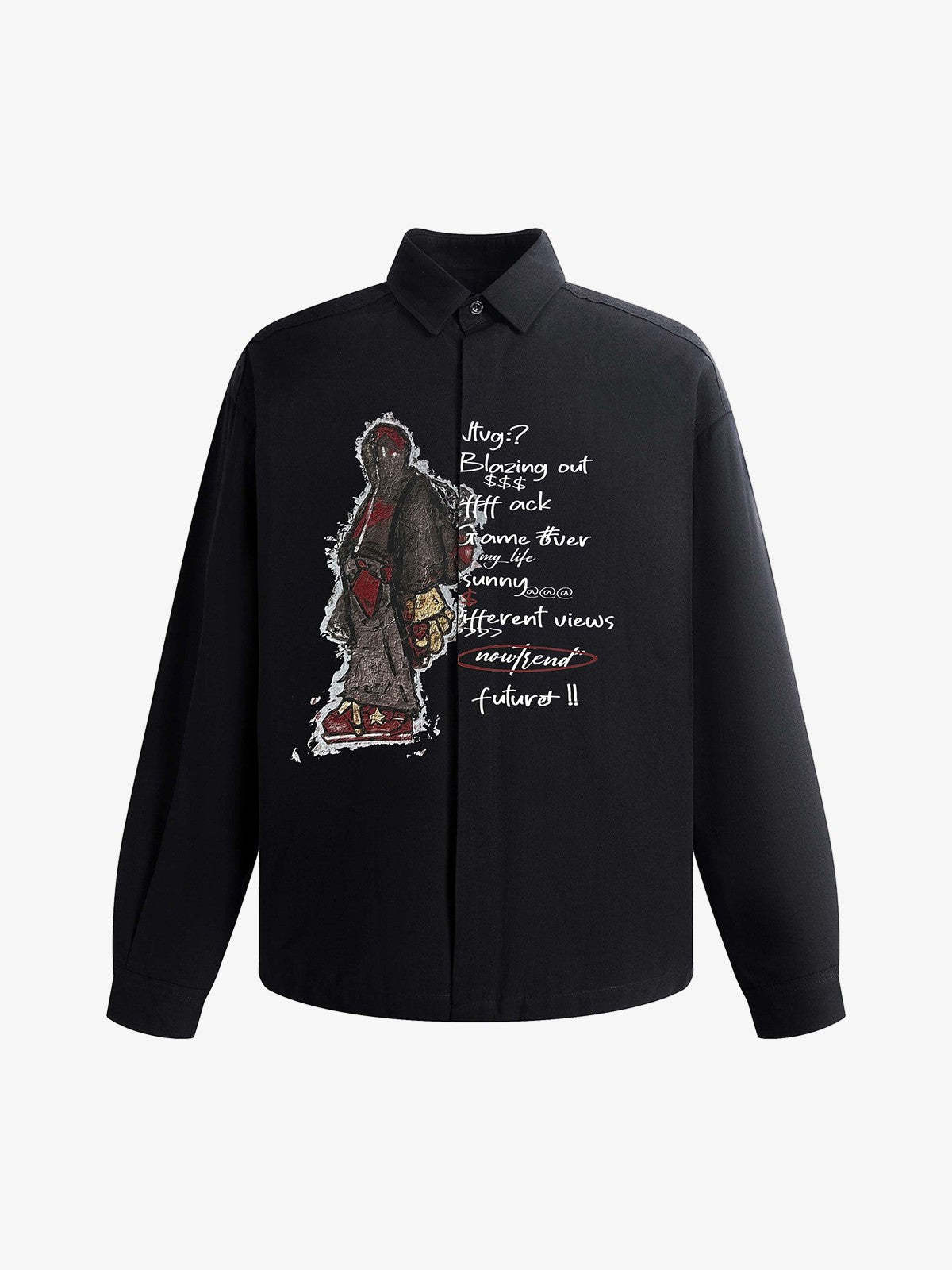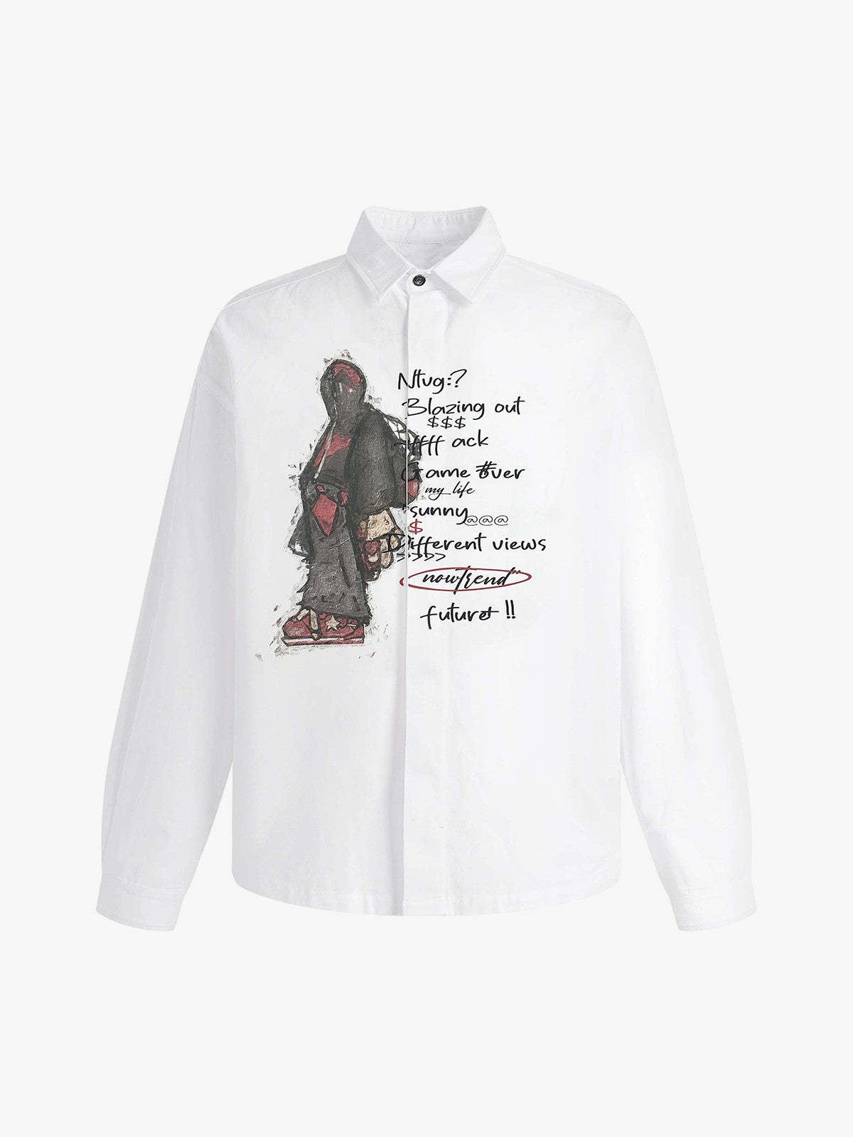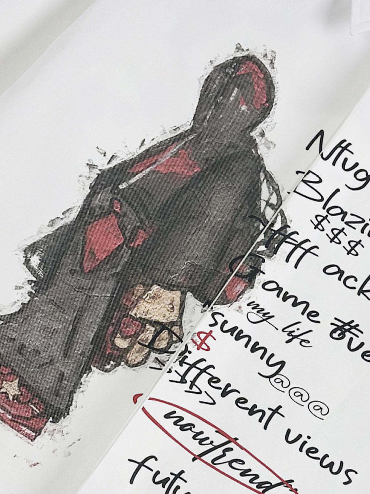 • Design Elements: Unique Street Art Graphic, Handwritten Text Details, Fashionable Silhouette