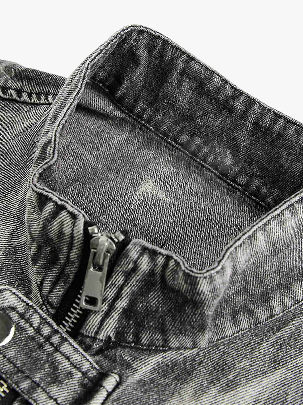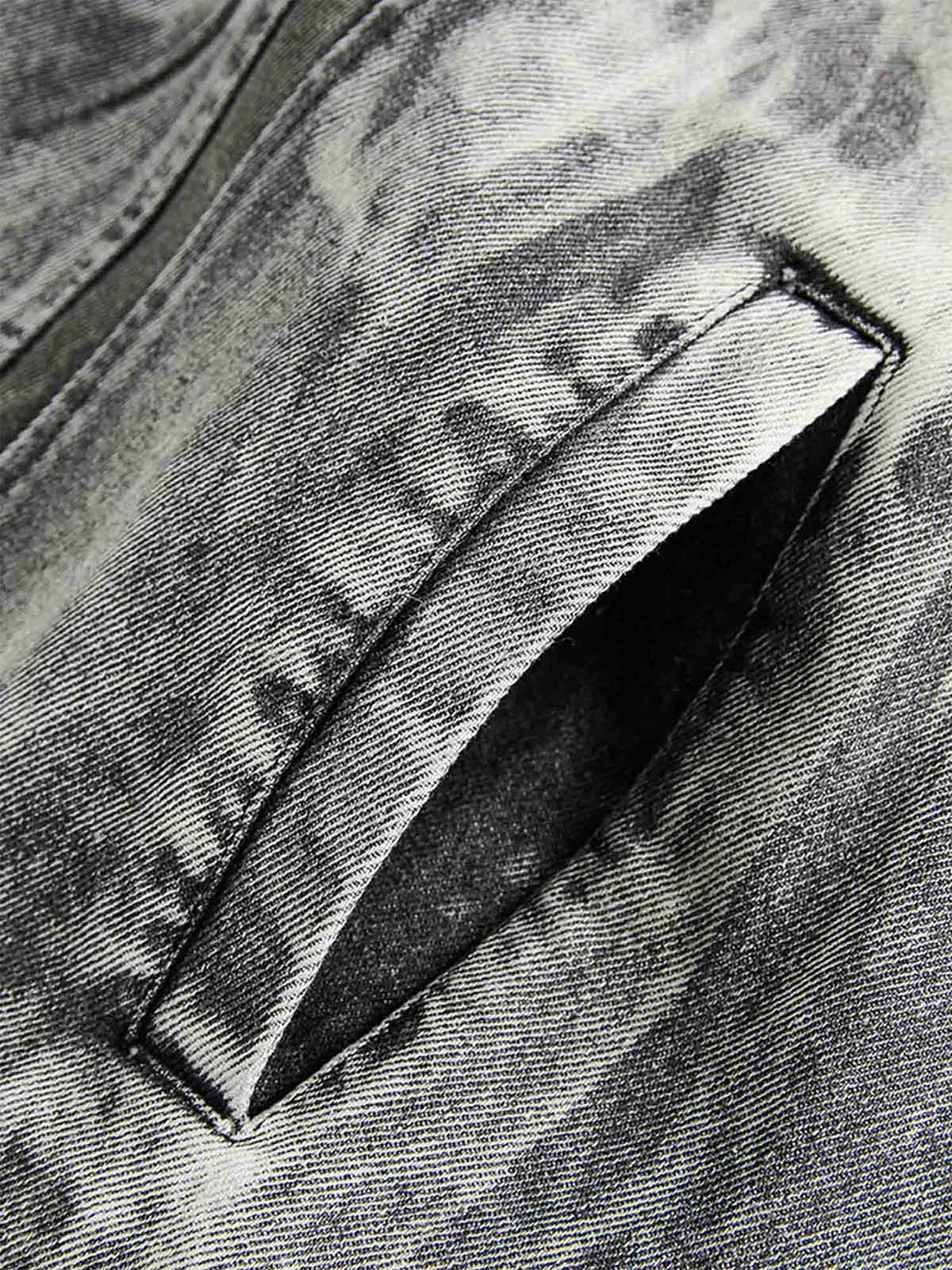 Thesupermade Hip-hop Distressed Washed Printed Denim Jacket - 2239