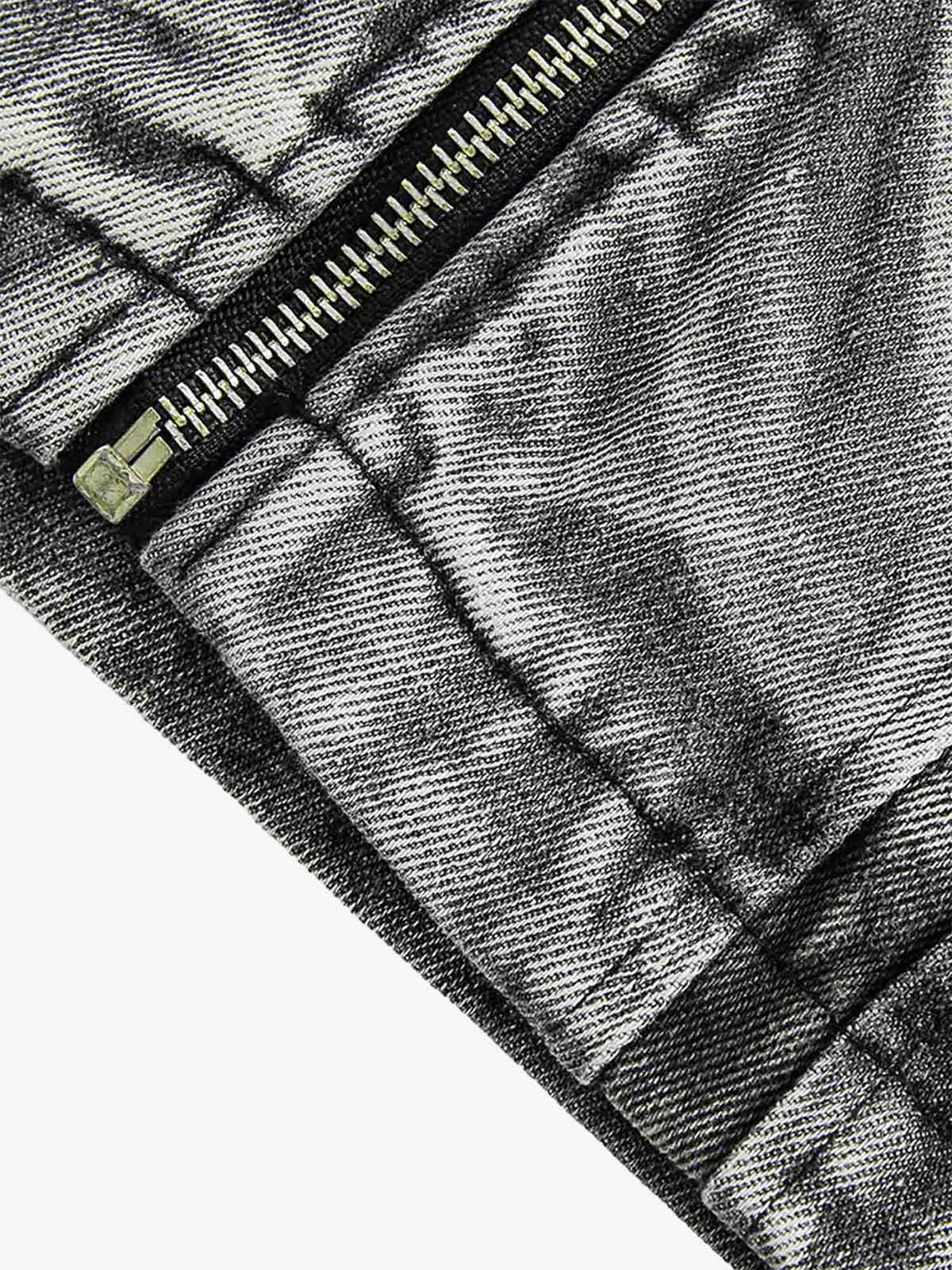 • Detail Features: Side Pockets, Button Closure, Distressed Effect, Ribbed Cuffs and Hem