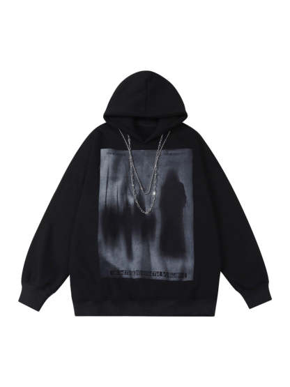 Thesupermade Blur Graphic Chain Hooded Sweatshirt