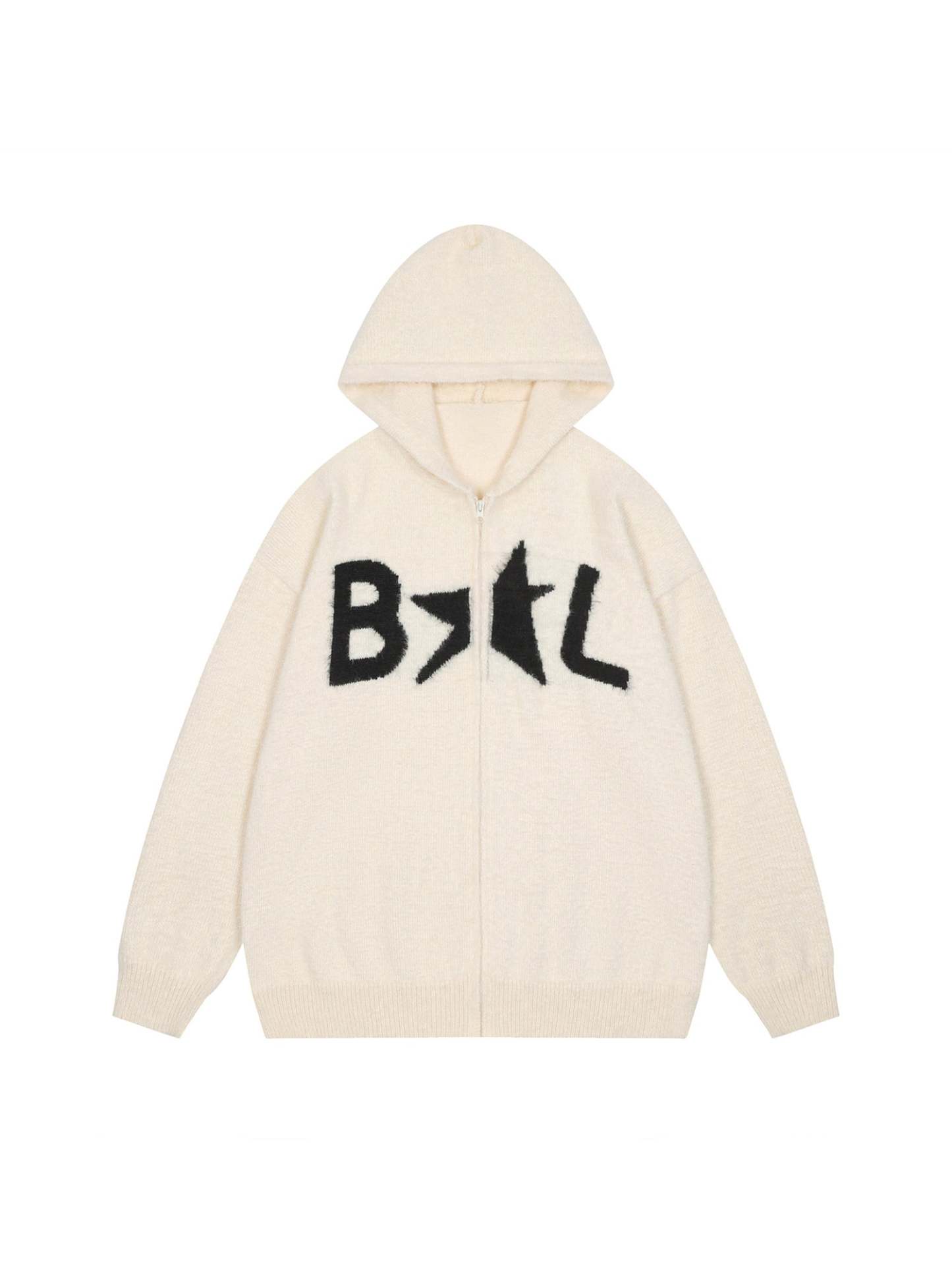 Thesupermade Star Knit Hooded Zip Up Cardigan Sweater