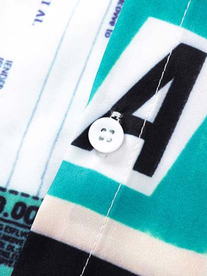• Detail Features: Button-Up Front, Short Sleeves, Graphic Print