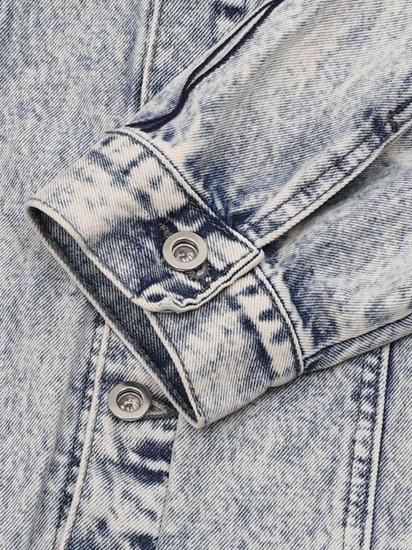 • Detail Features: Button Closure, Chest Pockets, Distressed Design