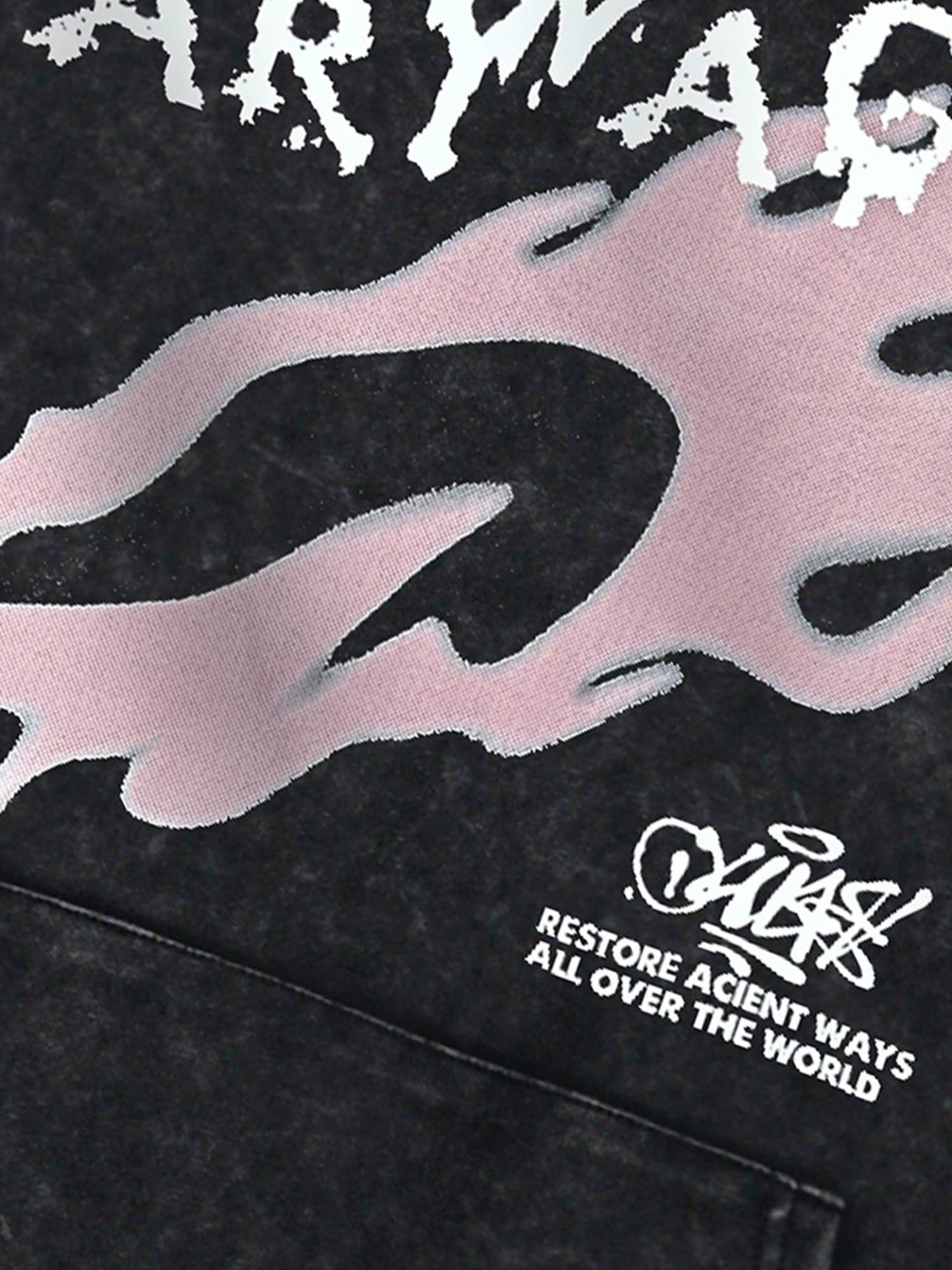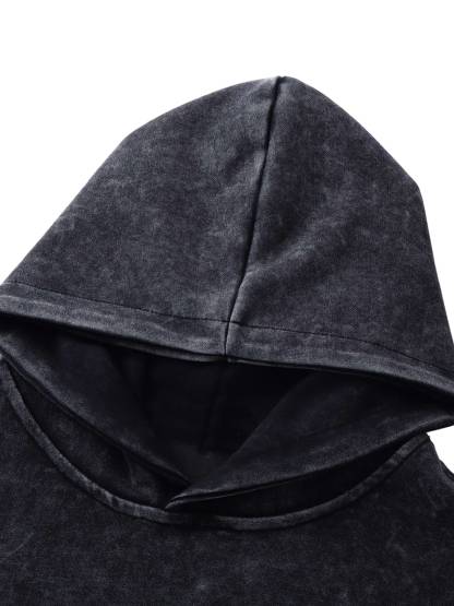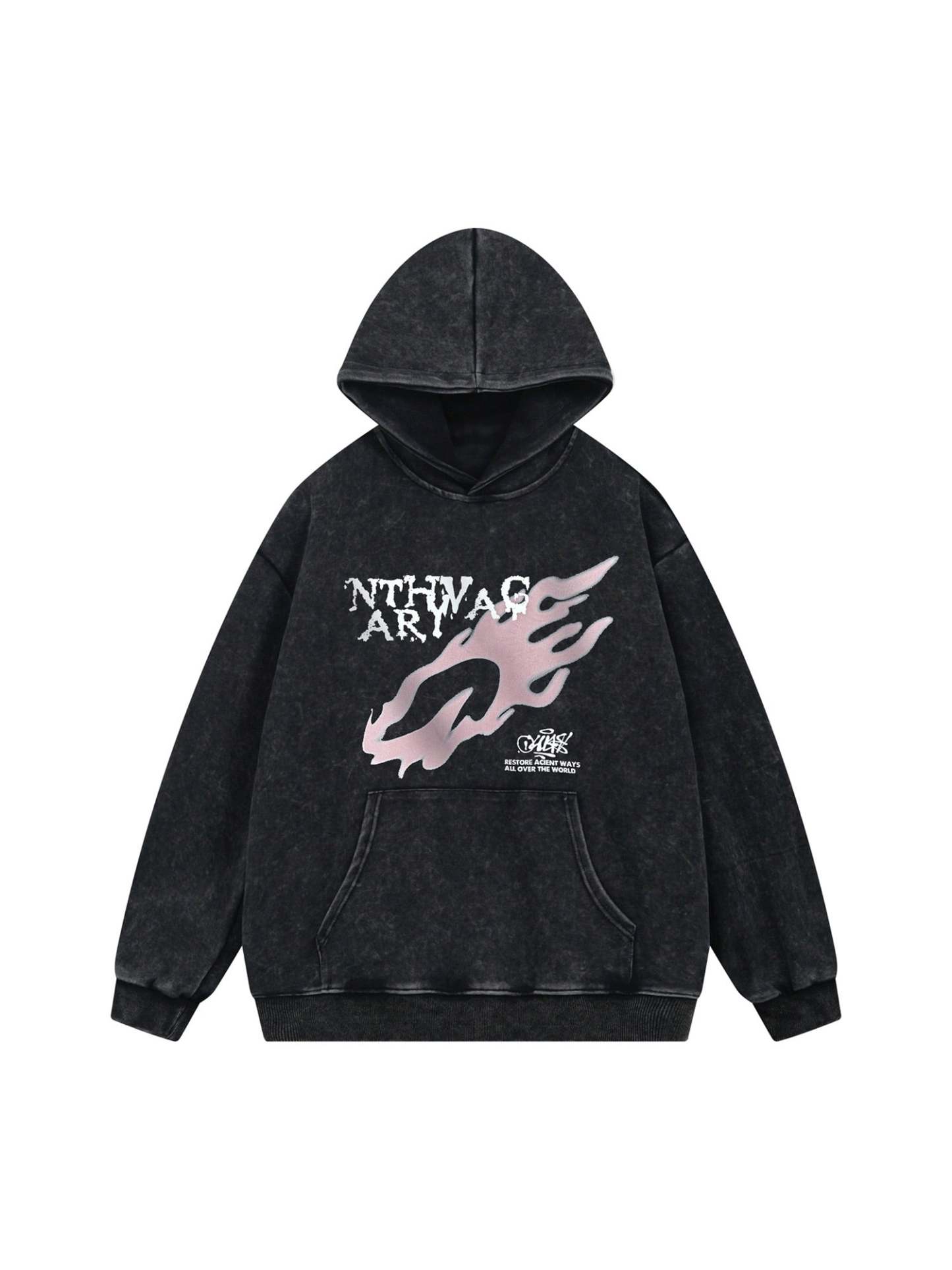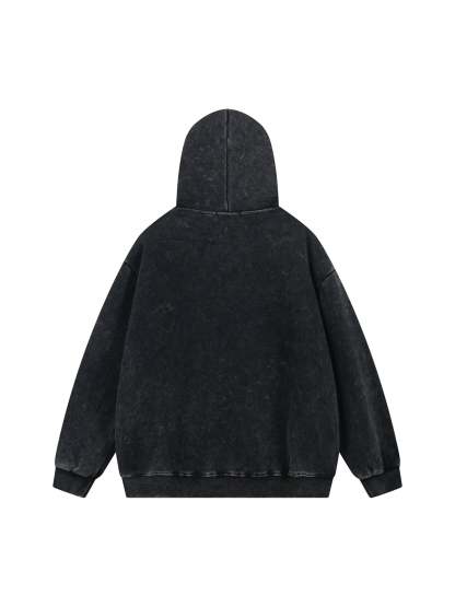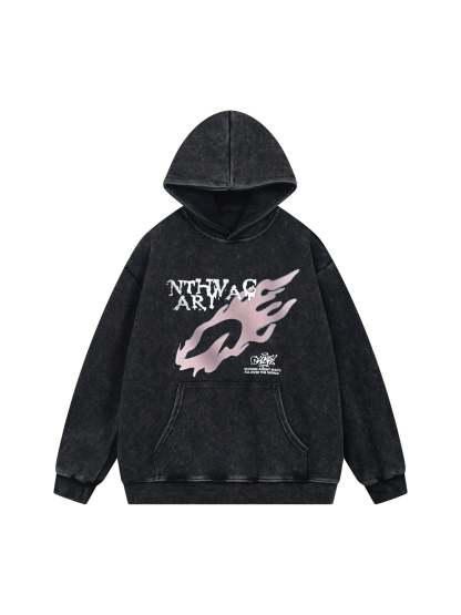 Thesupermade Washed Flame Printed Hooded Fleece Sweatshirt