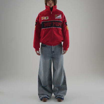 Unisex Racing Style Street Fashion Loose Racing Casual Print Jacket