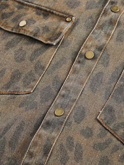Vintage Distressed Cheetah Print Denim Shirt