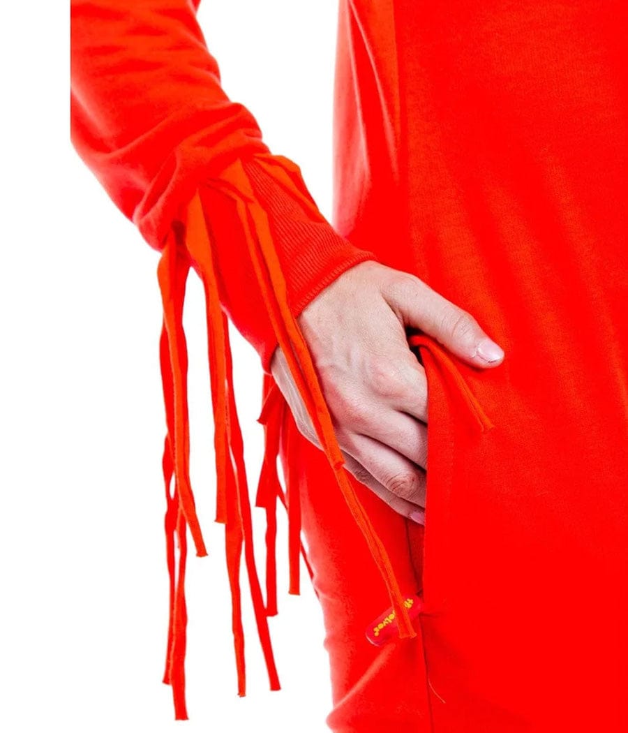 Whether it's Black Friday or Cyber Monday, Lord knows we all love a sale. For the shopping frenzy spirit without losing an arm, stay at home and throw this on instead. This women's air dancer costume is a guaranteed talking point for a Halloween party. With its blaring red and fringed hands, it'll help to make you stand out amongst all the movie villains. It's also chilled enough to head around the streets trick or treating without making kiddies cry. Who could cower at the sight of those googly eyes and yellow hair? If the red wasn't enough to get you noticed, the huge yellow lettering on your chest might be. It's super flexible for those little air dances. Don't be fooled by the fringe hands - this bad boy is easy to get in and out of, perfect for bathroom breaks. Or maybe you might get even lucky. Check please.