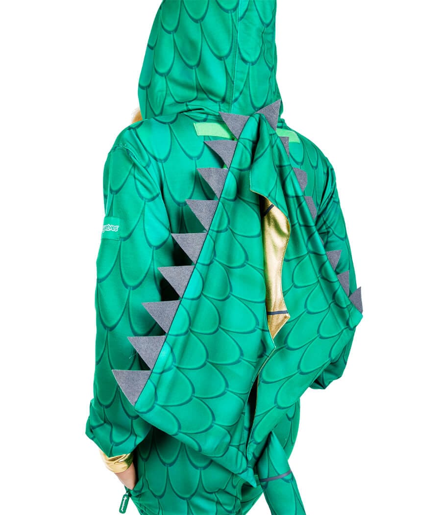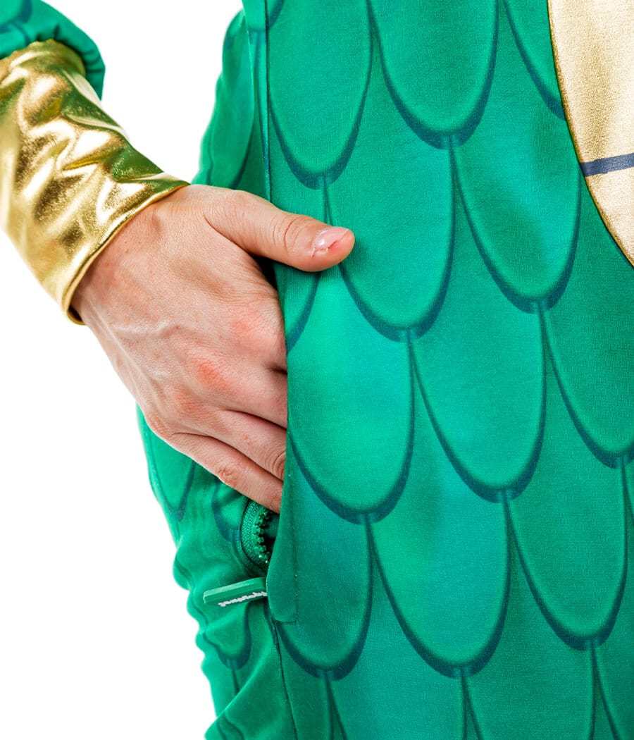 Play with fire and you're gonna get burned. The mother of dragons is here and she's taking no prisoners. Our women's dragon costume is scarier than a mouse and looser than a catsuit. What more could you want? Embrace the nerdy fantasy of breathing fire on your enemies with this super cute jumpsuit. It may look scaly, but we promise it's warm and fuzzy - great for taking to the streets with trick or treat. Rocking it at a Halloween party? First prize is yours thanks to the incredible attention to detail. It's got jagged wings, dragon horns, and even a tail if you need to take someone out quickly. Great for the bathroom queues. This green one-piece will allow you to move around freely, and you can even fill it with Halloween candy. There's no guarantee it will make you glide around castles, but we know you'll look pretty fly.