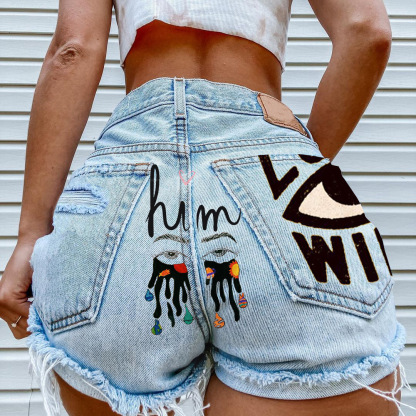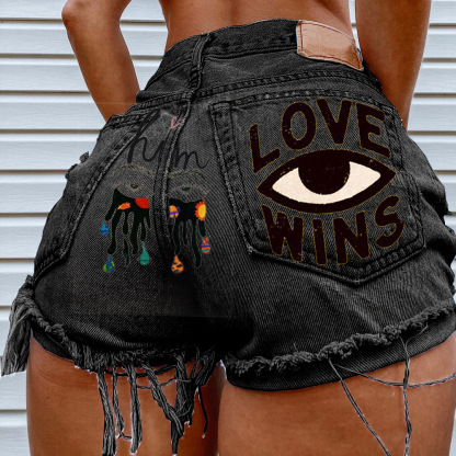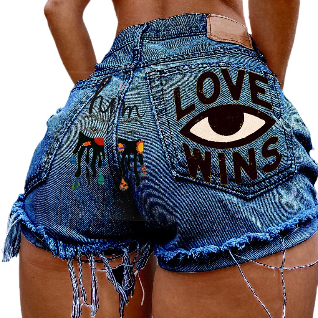Women's Super High Waist Denim Ripped Shorts Love Wins Sexy Hot Pants Shorts